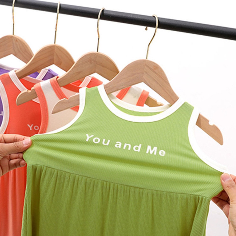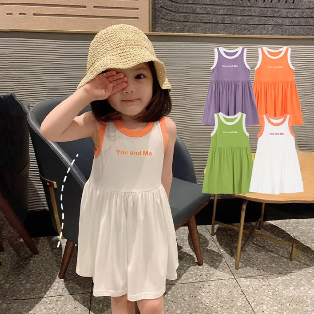 運動風冰絲涼感坑條拼接背心洋裝 女童 兒童 童裝 大童 連衣裙 沙灘裝 背心裙 連身裙【BB8859】