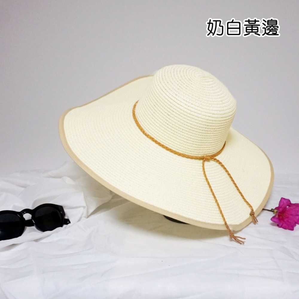 大帽沿 撞色滾邊麻花編繩圓頂草帽 大人 帽子 遮陽 防曬帽 草帽 配件 海邊 夏天【BB6942】
