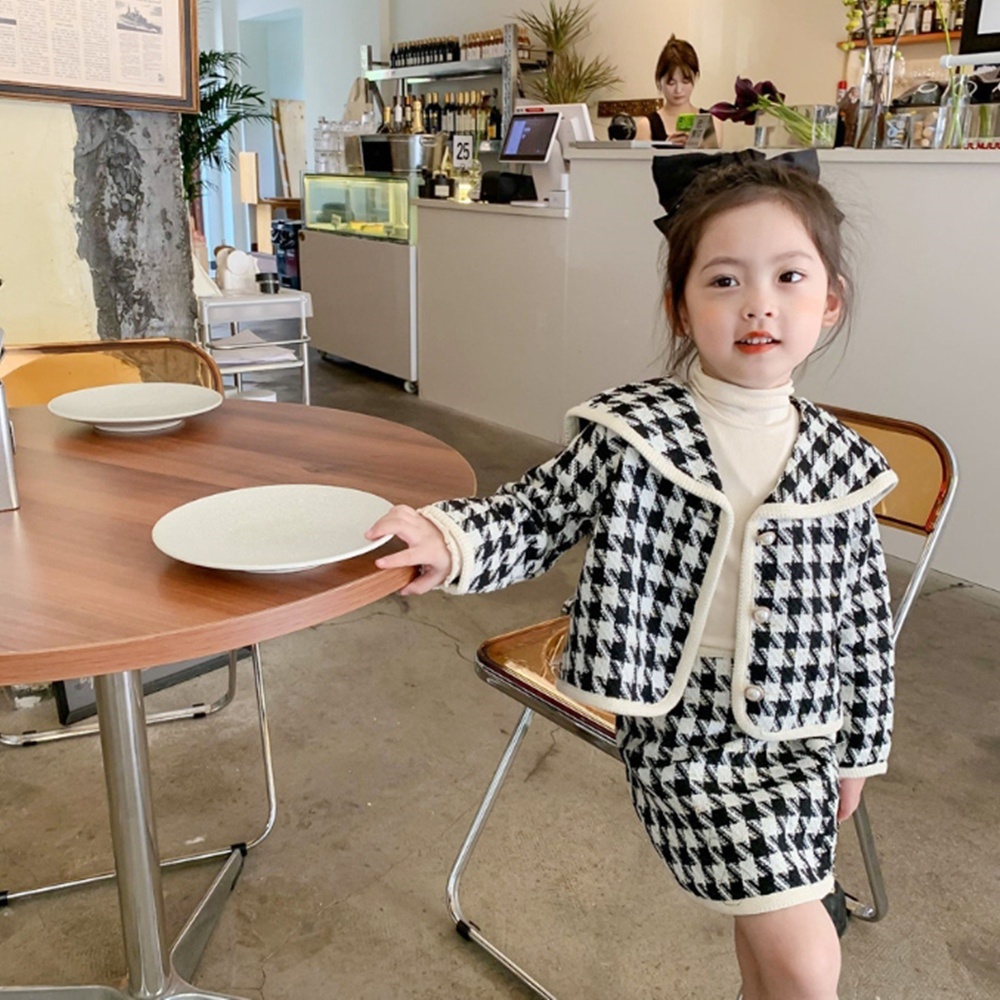氣質格紋翻領斜紋毛呢套裝 長袖外套 窄裙 裙子 小香風 女童 童裝 兒童 橘魔法 現貨【BB7504】