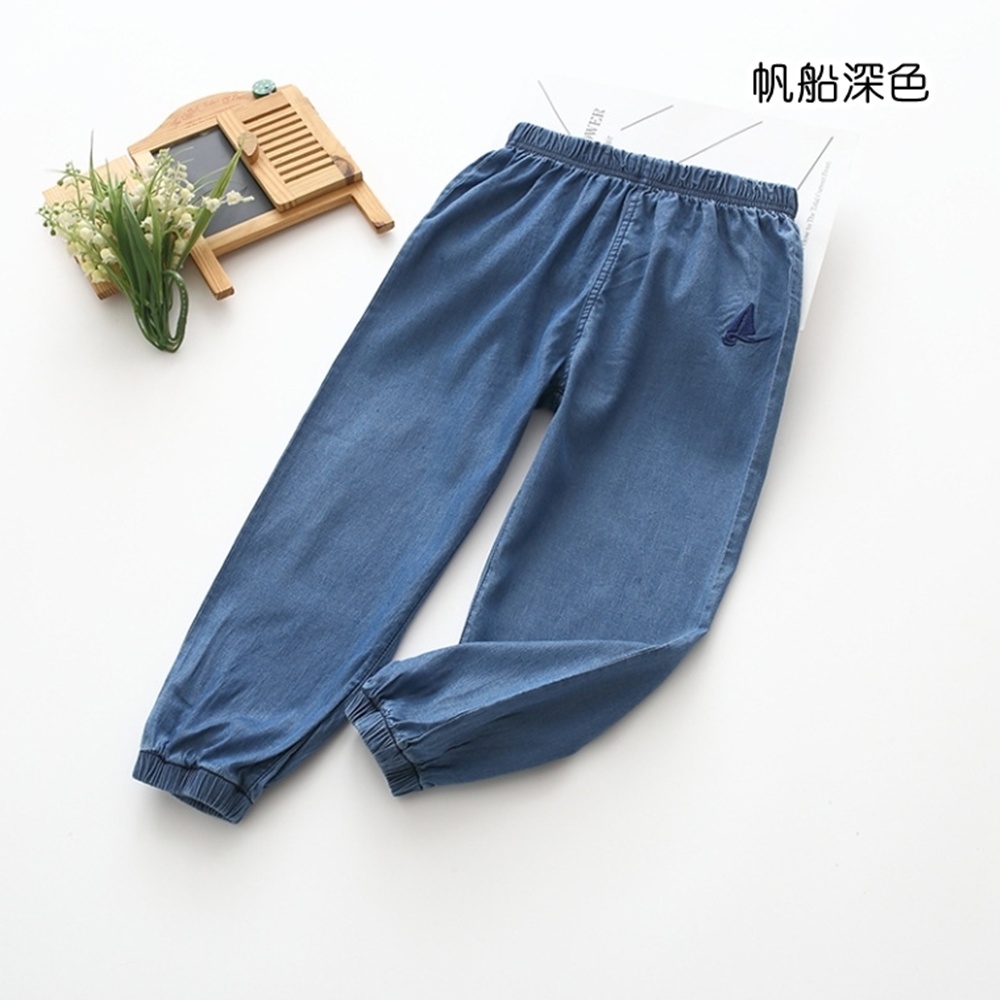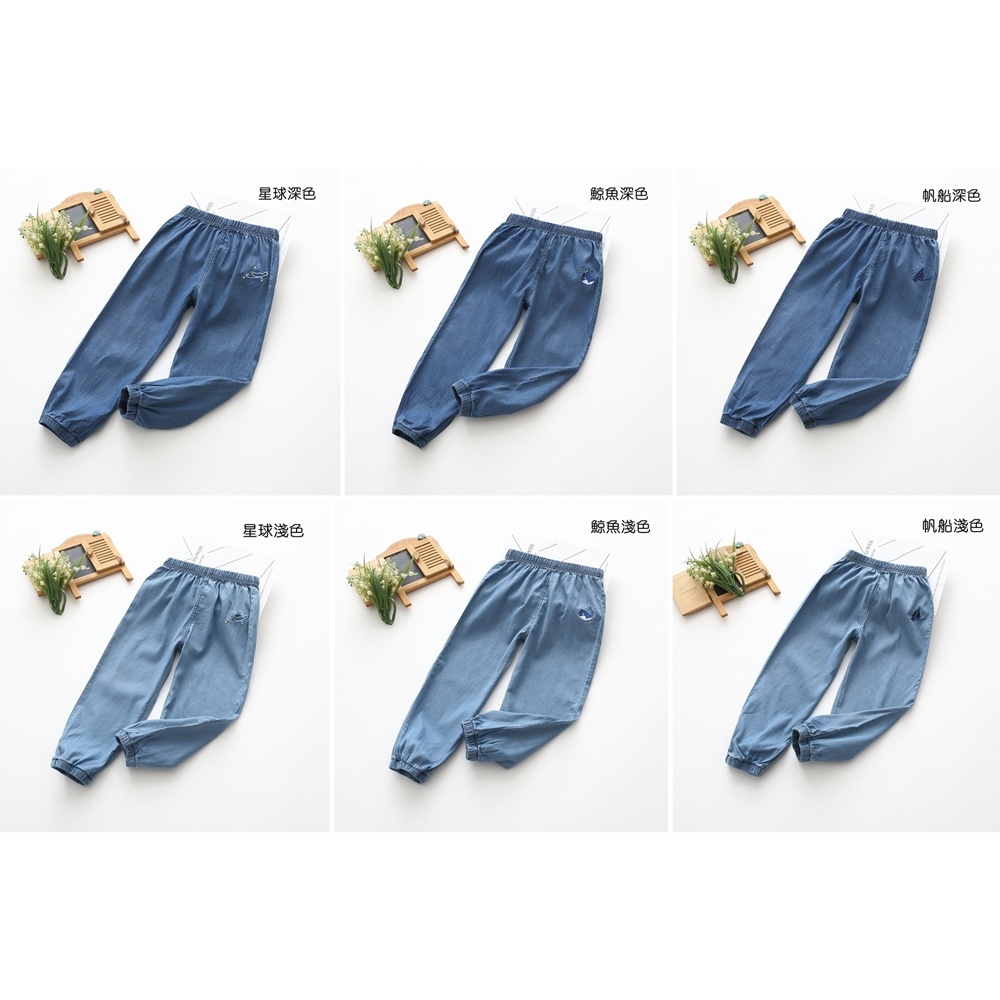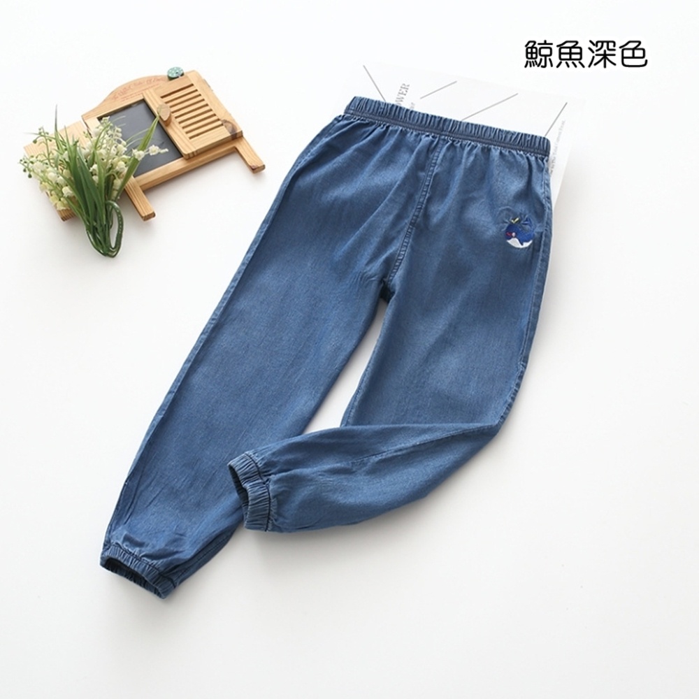 輕薄水洗刺繡牛仔褲 縮口長褲 防蚊褲 大童 長褲 沙灘褲 空調褲 薄長褲 女童【p0061234945976】