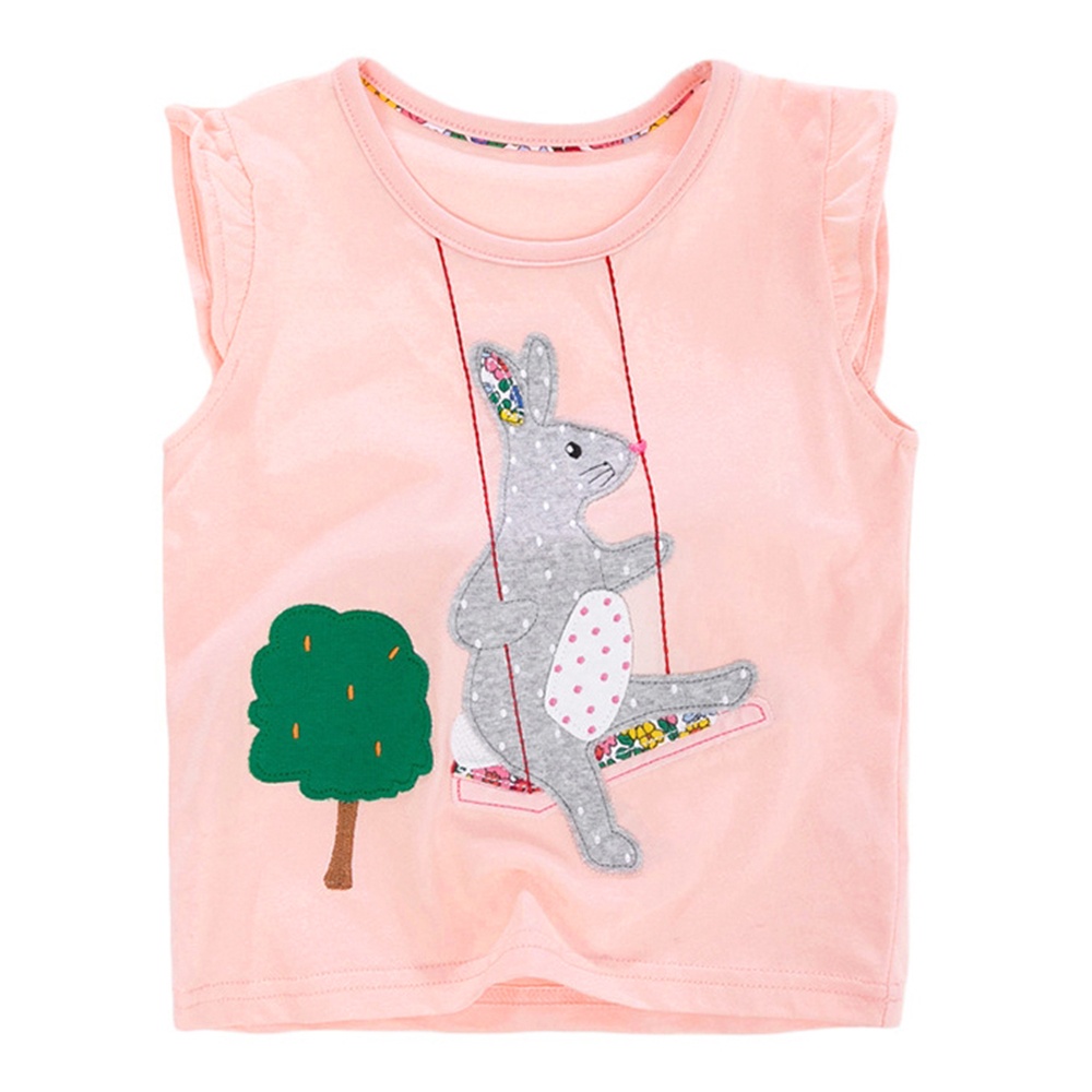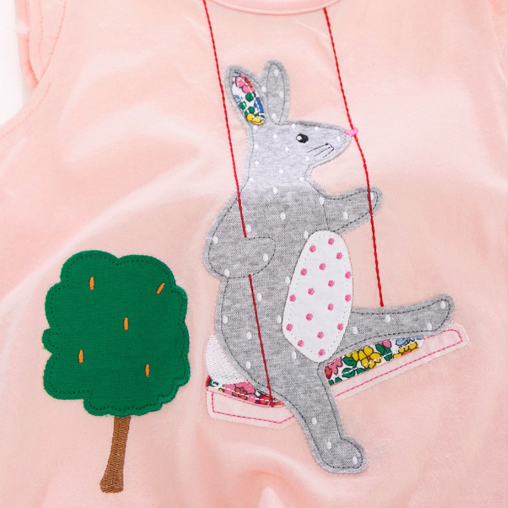 拼布兔子盪鞦韆小飛袖上衣 中童 童裝 女童 兒童 T恤 棉T 橘魔法 現貨【BB8629】