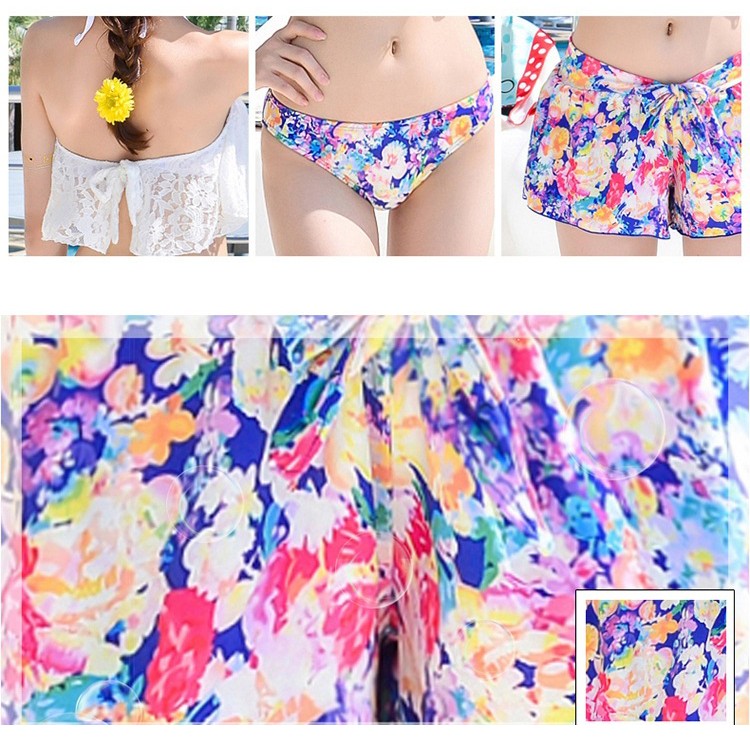 勾花蕾絲簍空鋼圈上衣+印花褲裙泳褲 比基尼 泳裝 泳衣 比基尼 三件式 橘魔法【p0061155973874】