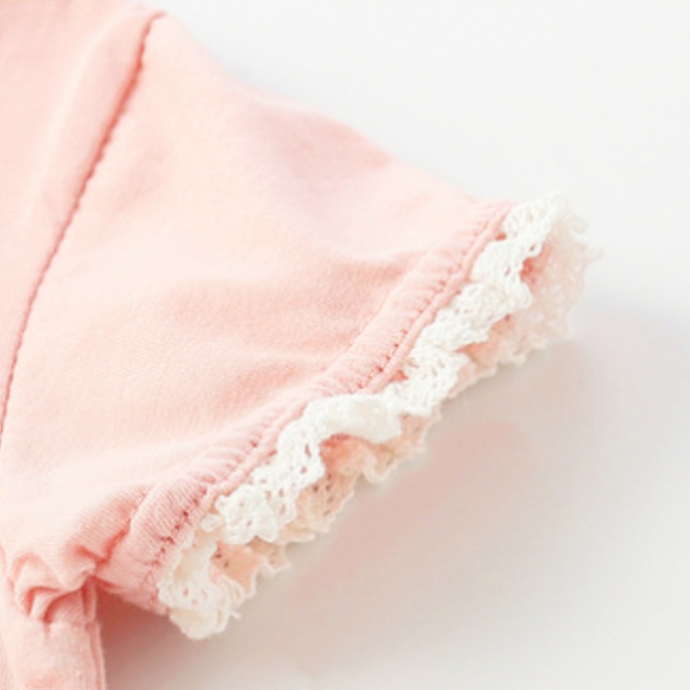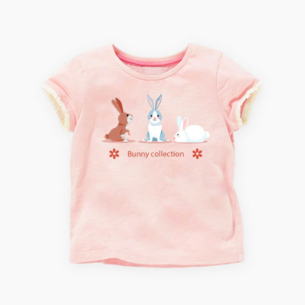 三隻兔子蕾絲滾邊短袖上衣 T恤 棉T 女童 兒童 童裝 現貨 橘魔法【BB7795】