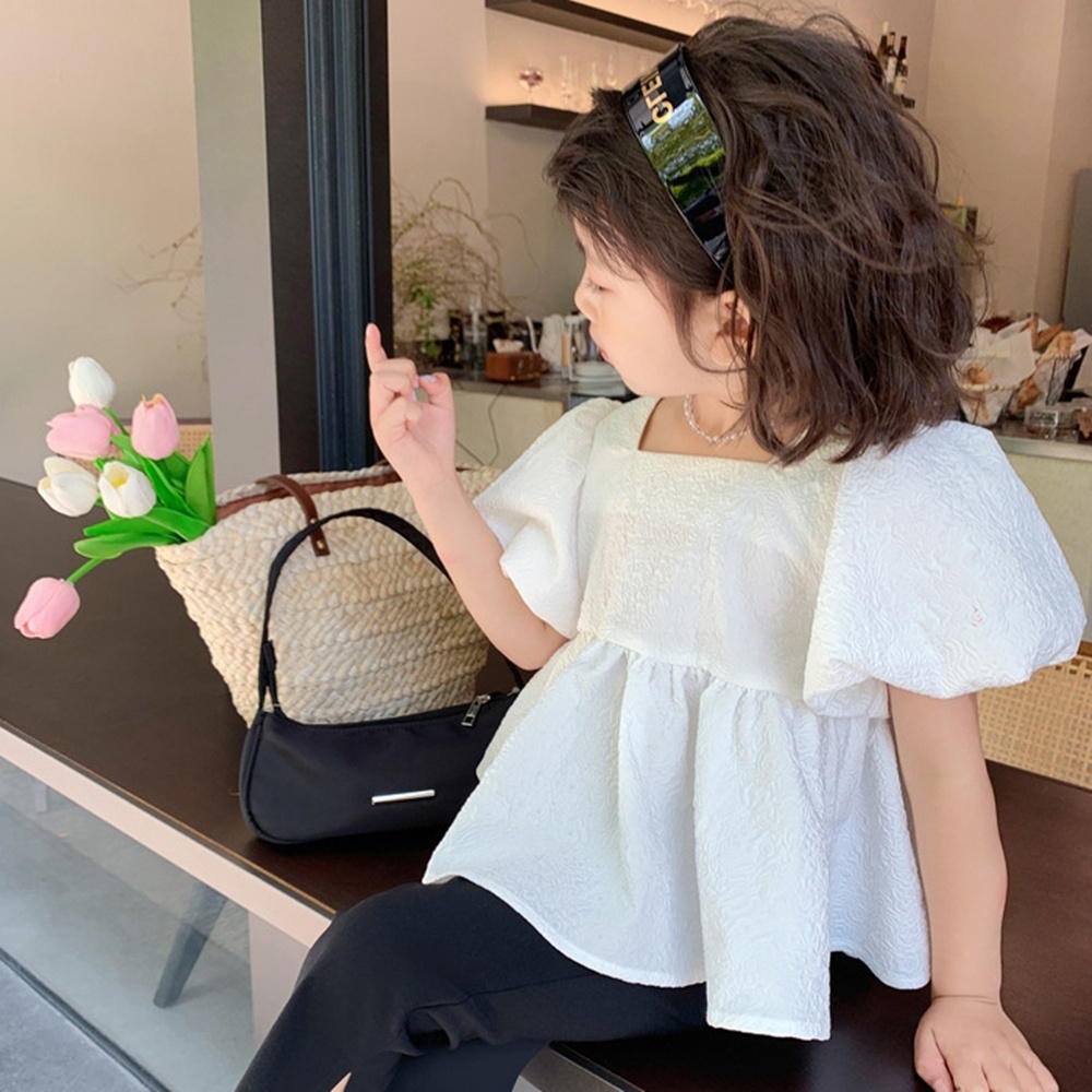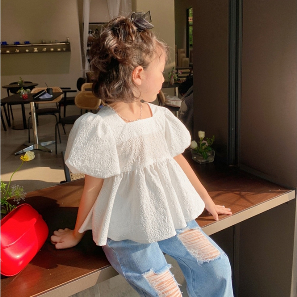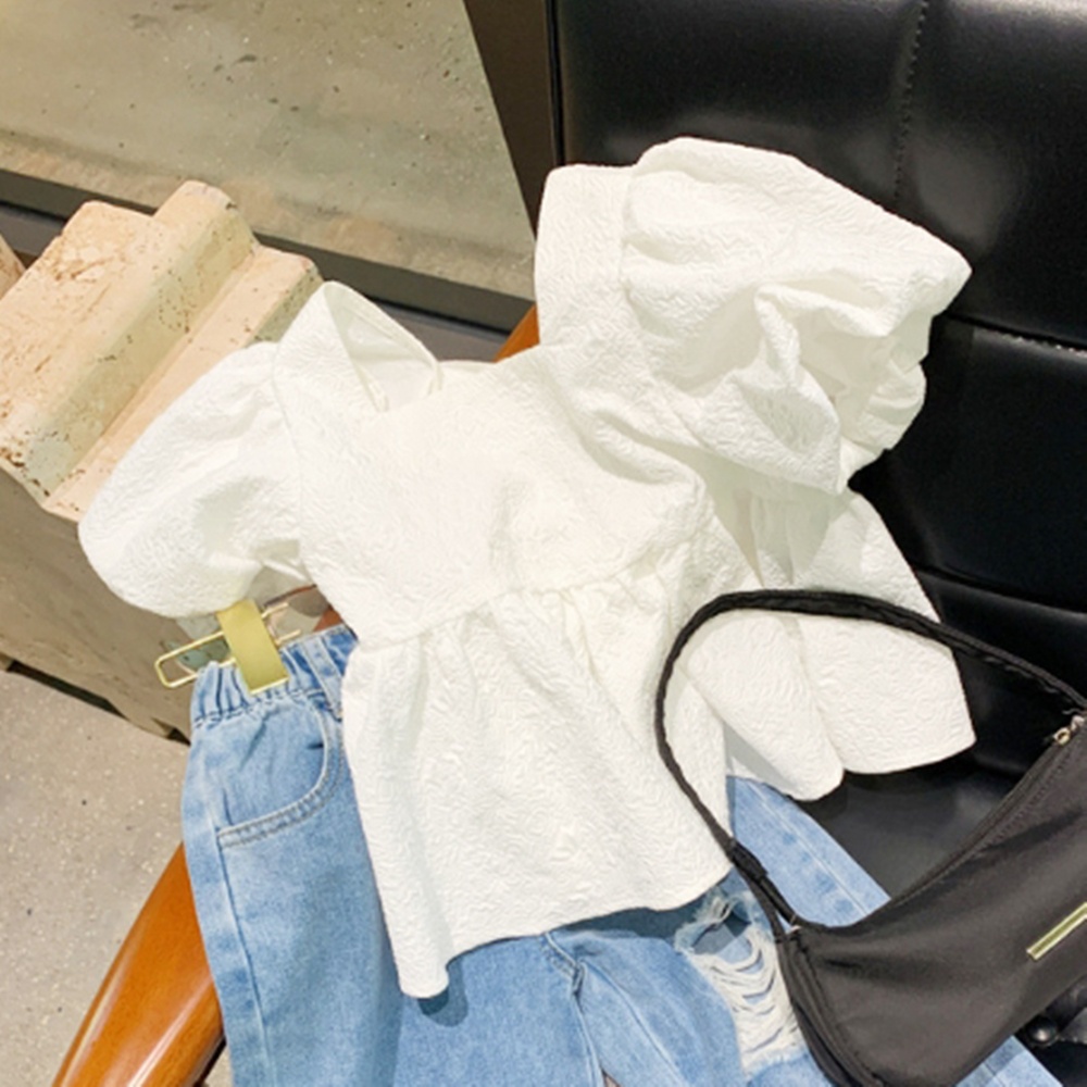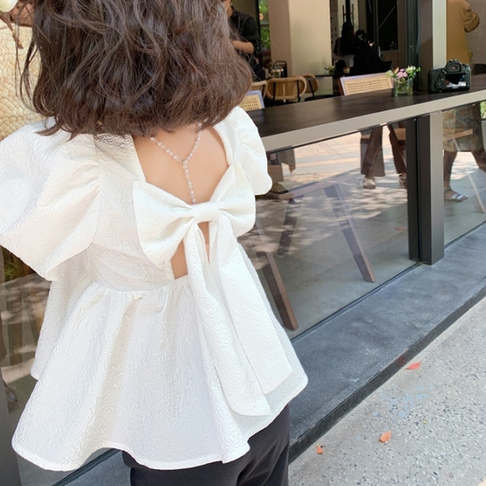 皺皺壓紋背後大蝴蝶結娃娃衫 長版上衣 短袖上衣 女童 兒童 童裝 橘魔法【BB7770】