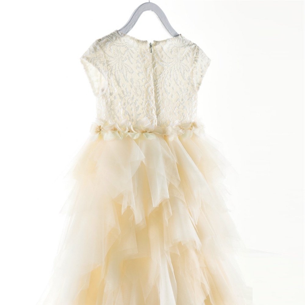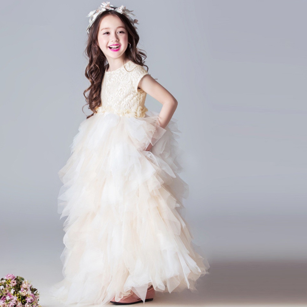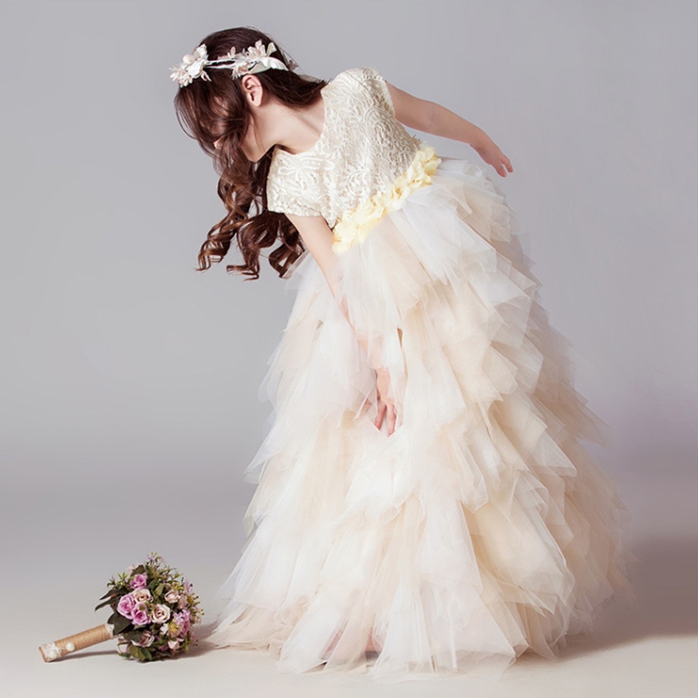 氣質珍珠花朵 蕾絲蛋糕澎澎長紗裙禮服 大童 花童 畢業 禮服 全家福 婚禮 紗裙 女童【BB7429】