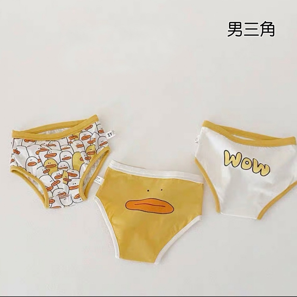 (3件一組) 雙色小鴨滾邊薄棉內褲 男童 三角褲 平角內褲 四角褲 男童 女童 童裝 兒童【p0061235944692