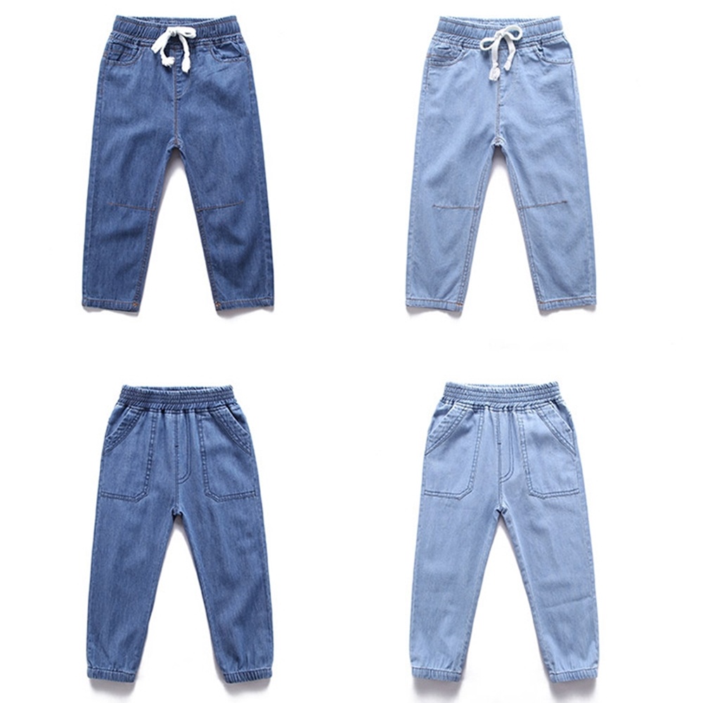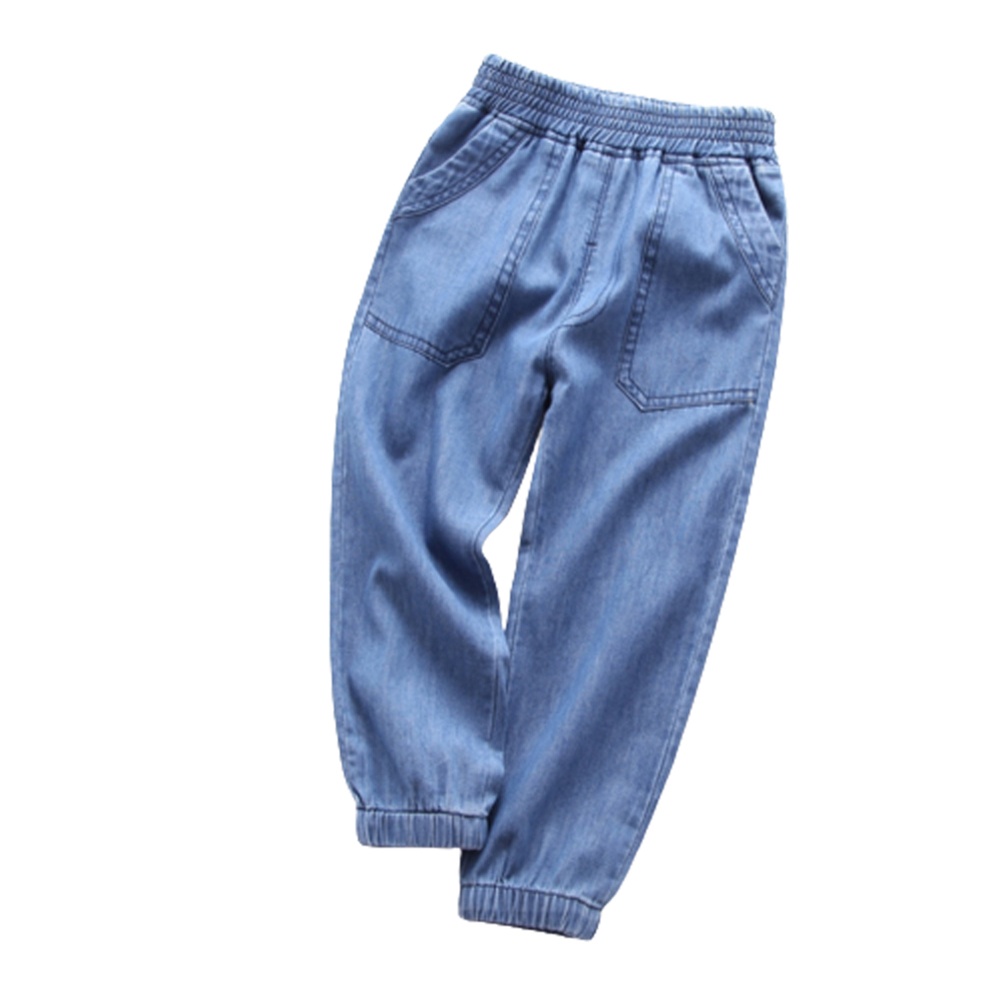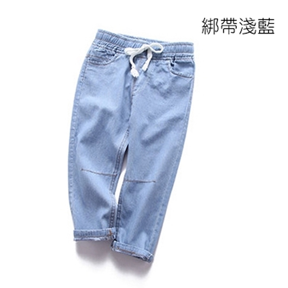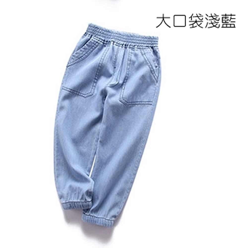 薄款水洗口袋繫帶鬆緊褲頭牛仔褲 大童 長褲 防蚊褲 縮口褲 童裝 男女童 兒童 薄長褲【BB7062】