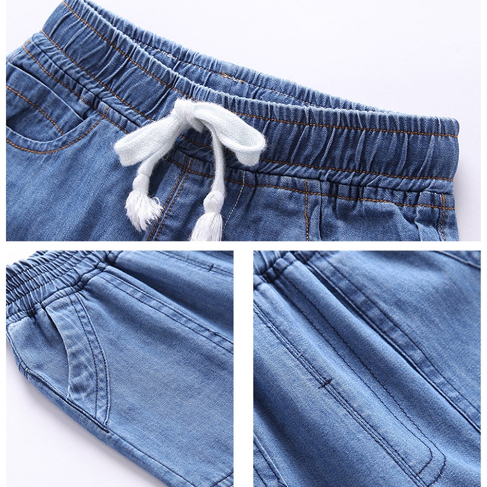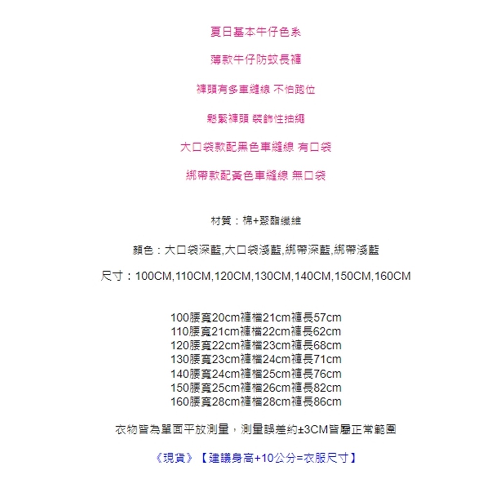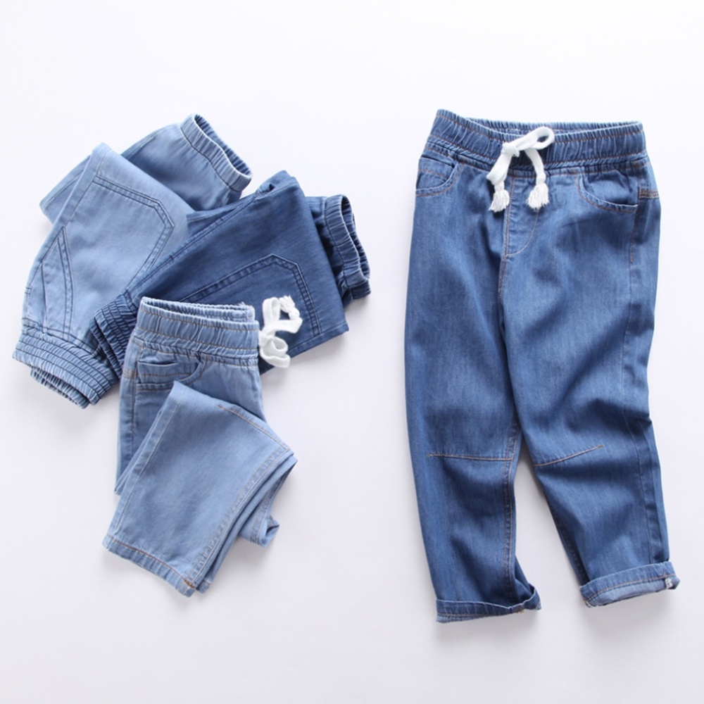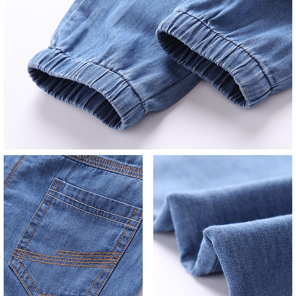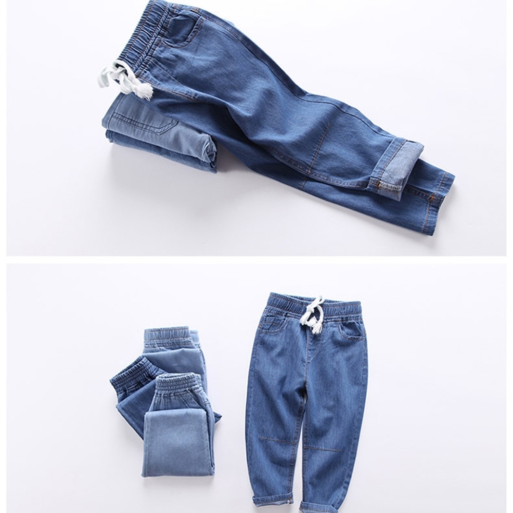 薄款水洗口袋繫帶鬆緊褲頭牛仔褲 大童 長褲 防蚊褲 縮口褲 童裝 男女童 兒童 薄長褲【BB7062】