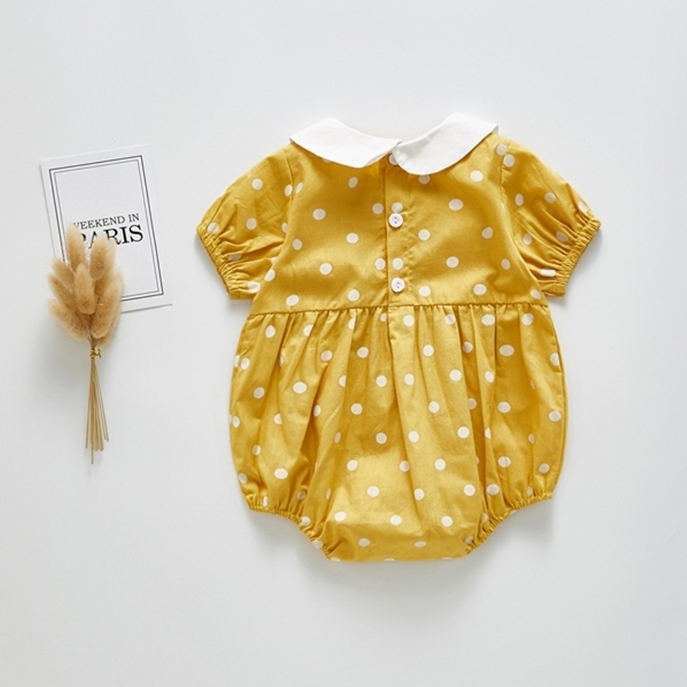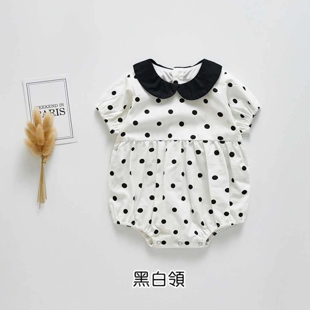 (小童優惠價)小圓翻領點點短袖包屁衣 連身衣 童裝 小童 女童 橘魔法 現貨【BB8819】