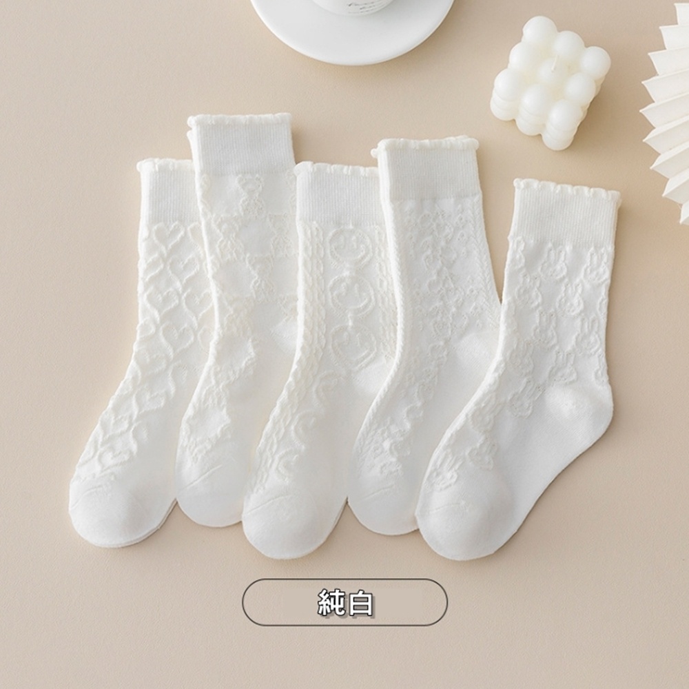 (5雙一組) 氣質圖形浮雕花中筒襪 襪子 堆堆襪 兒童 女童 兒童 童裝 橘魔法 現貨【BB7911】