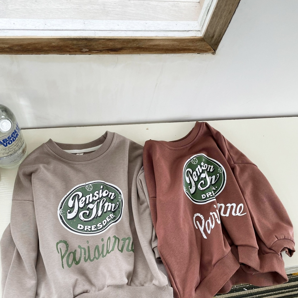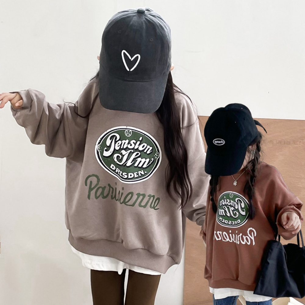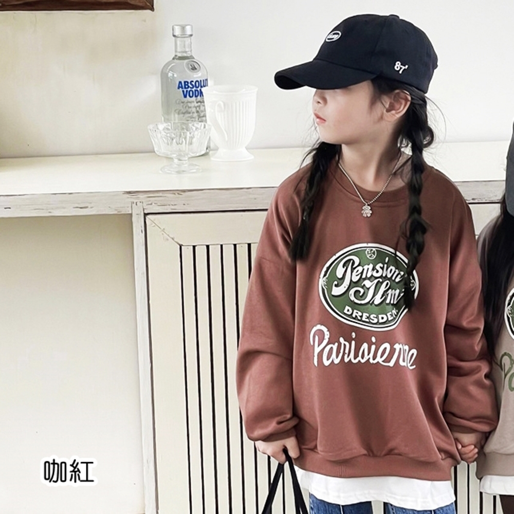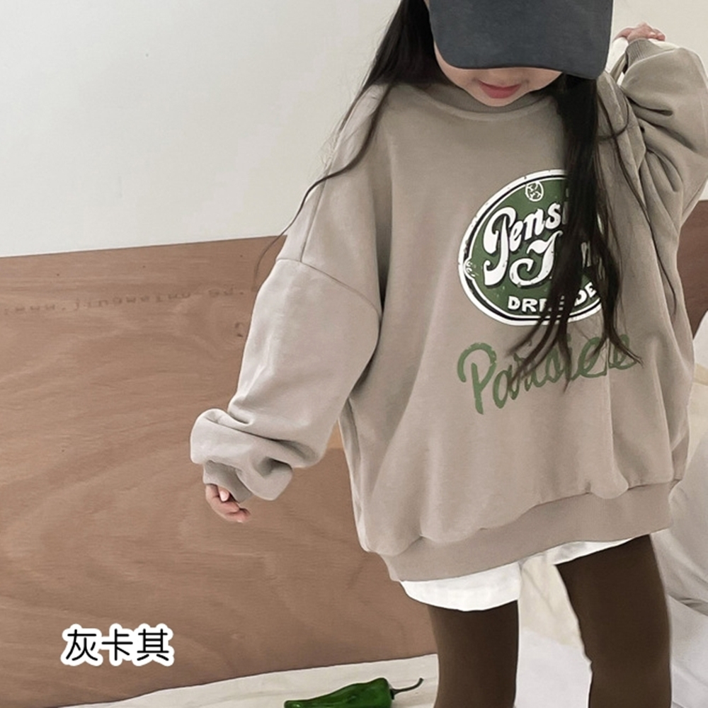 大地色美式街頭毛圈棉長袖上衣 男童 女童 大童 童裝 兒童 衛衣 大學T 中性款 橘魔法 現貨【BB9314】