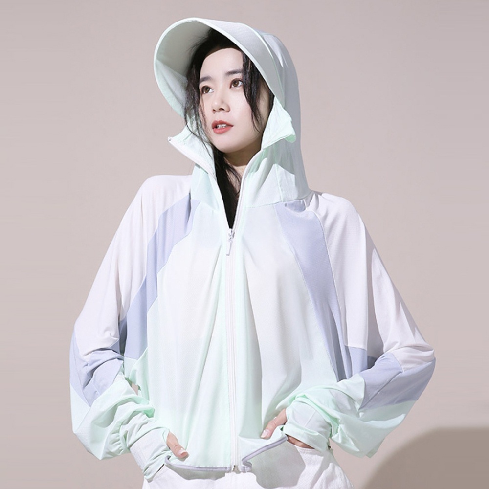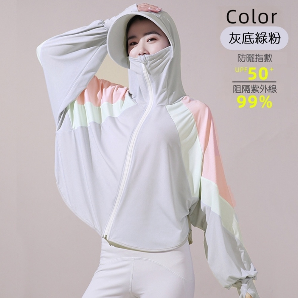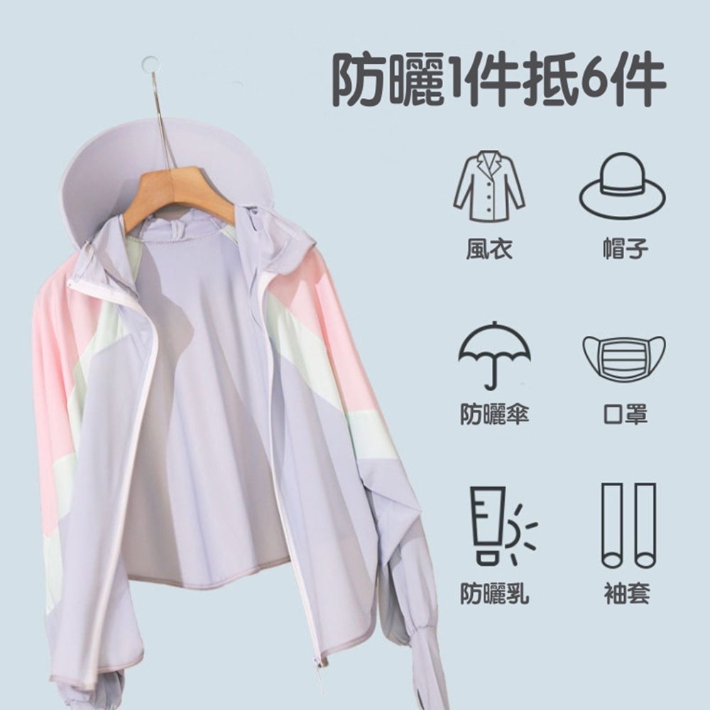 拼接色塊冰絲涼感輕薄防曬連帽長袖外套 薄外套 防曬外套 冷氣房 防蚊 大童 大人【BB8000】
