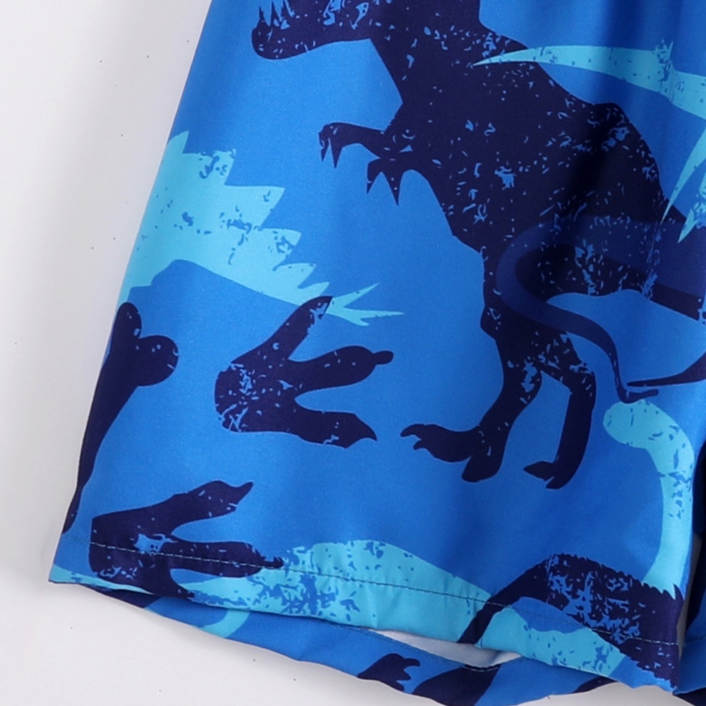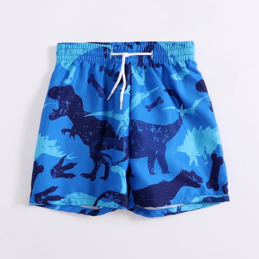 雙色藍恐龍滿印快乾沙灘褲 短褲 海灘褲 褲子 男童 中童 兒童 童裝 現貨 橘魔法【BB8089】