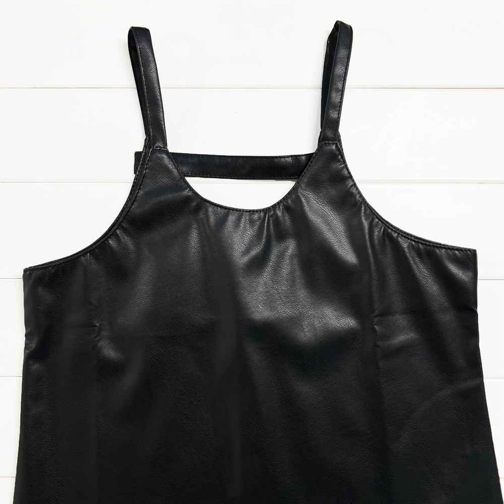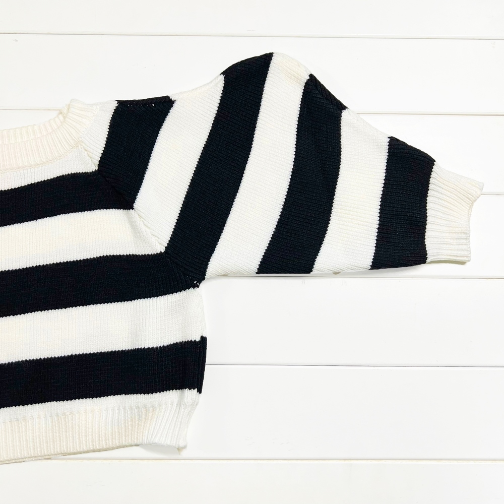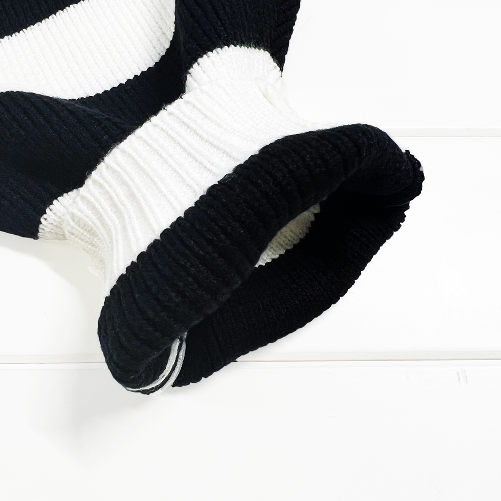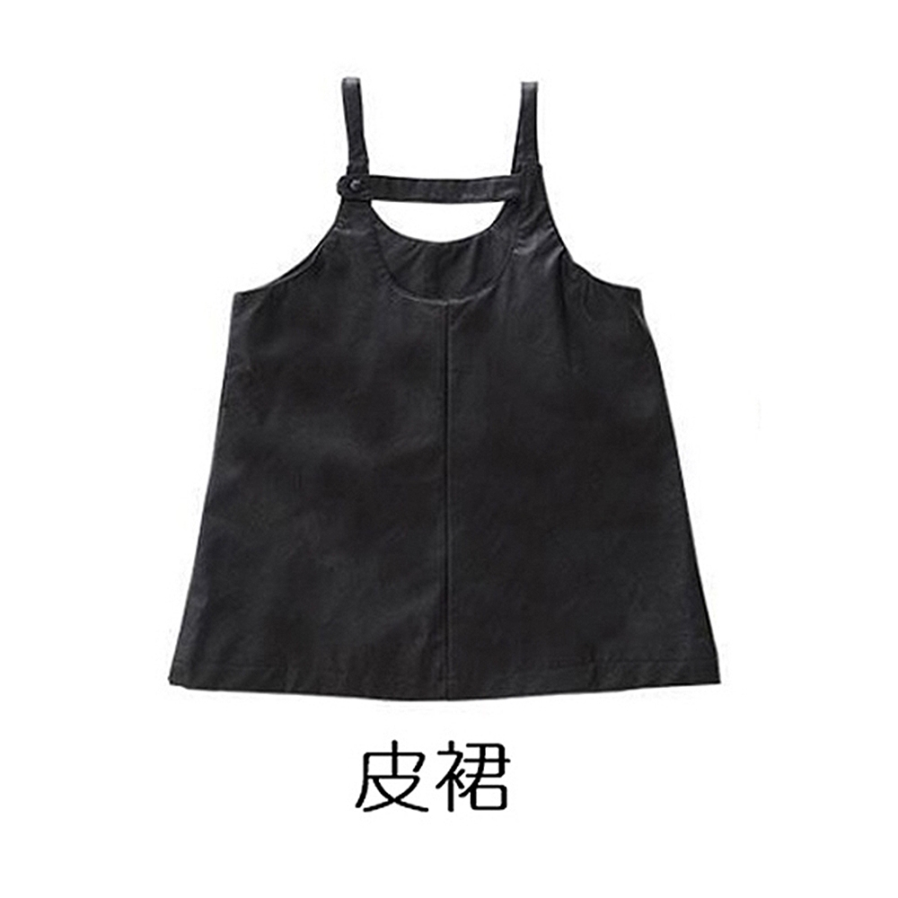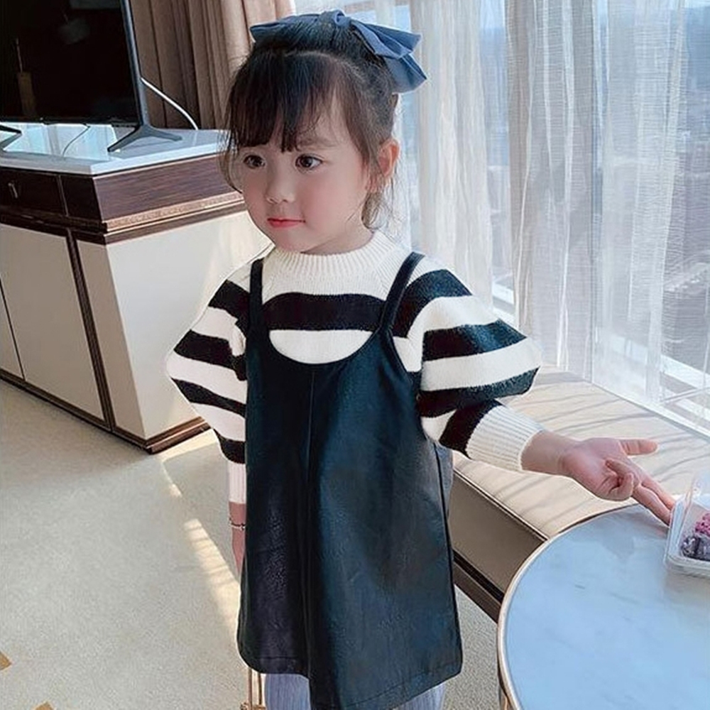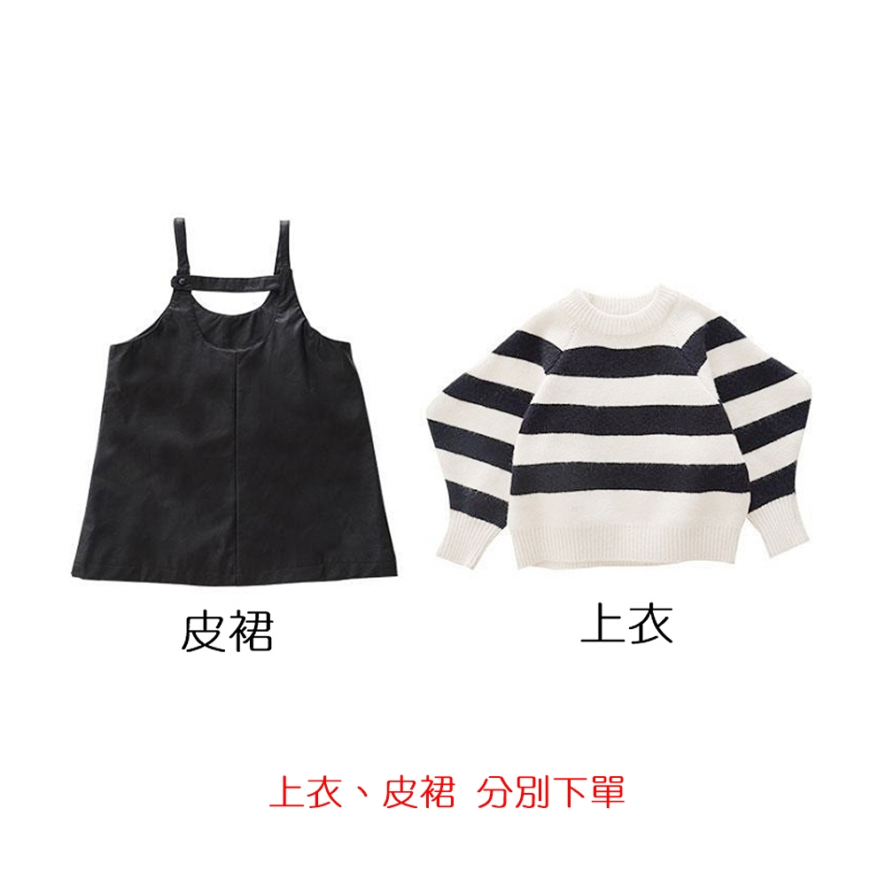 (小童優惠價)黑白寬條紋毛衣+黑色吊帶皮裙 套裝 長袖上衣 針織衫 皮裙 連身裙 BB7481