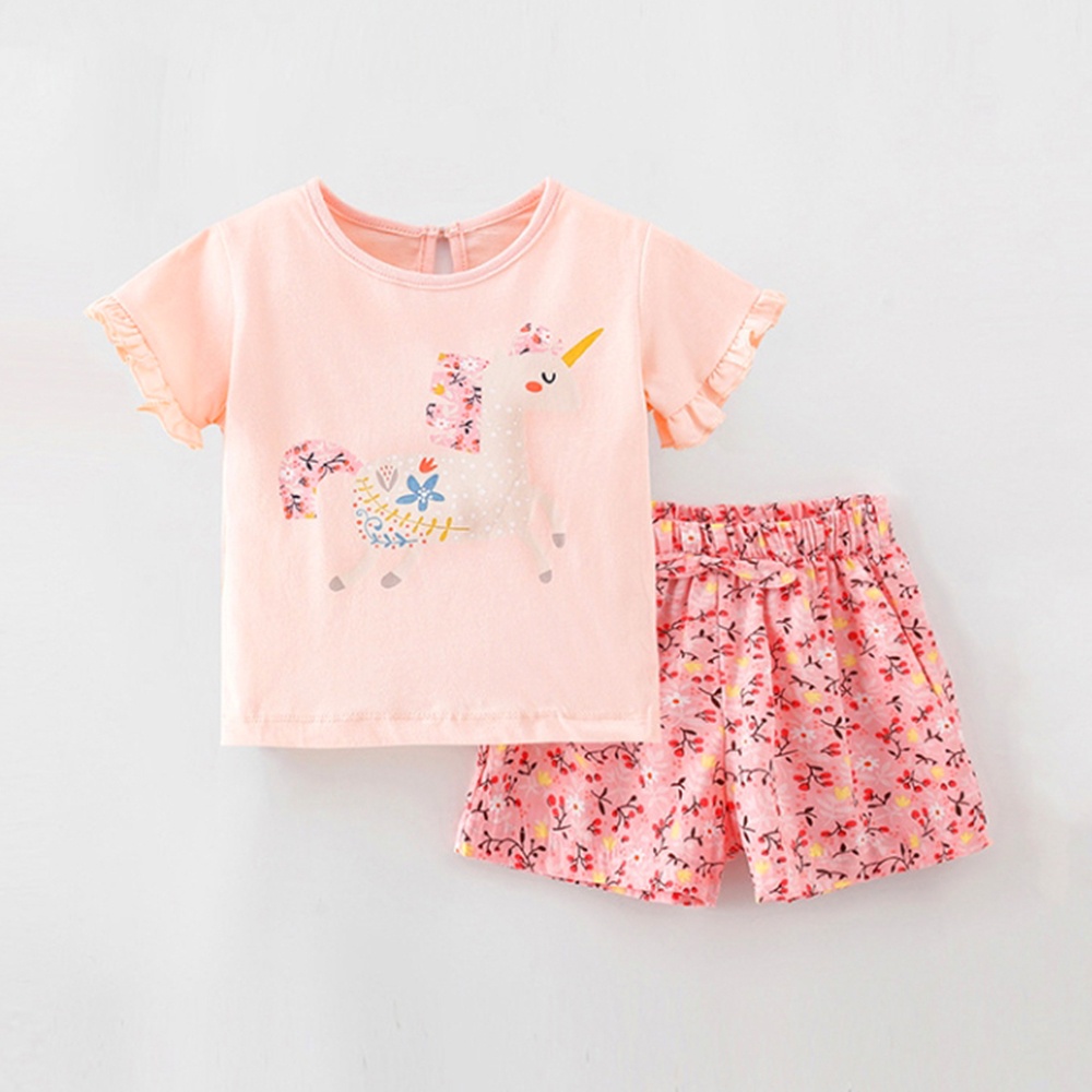 花草獨角獸小飛袖上衣+碎花短褲 套裝 女童 棉T T恤 褲子 兒童 現貨 橘魔法 童裝【p0061236066559】