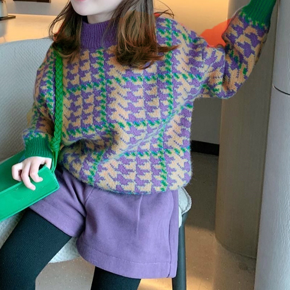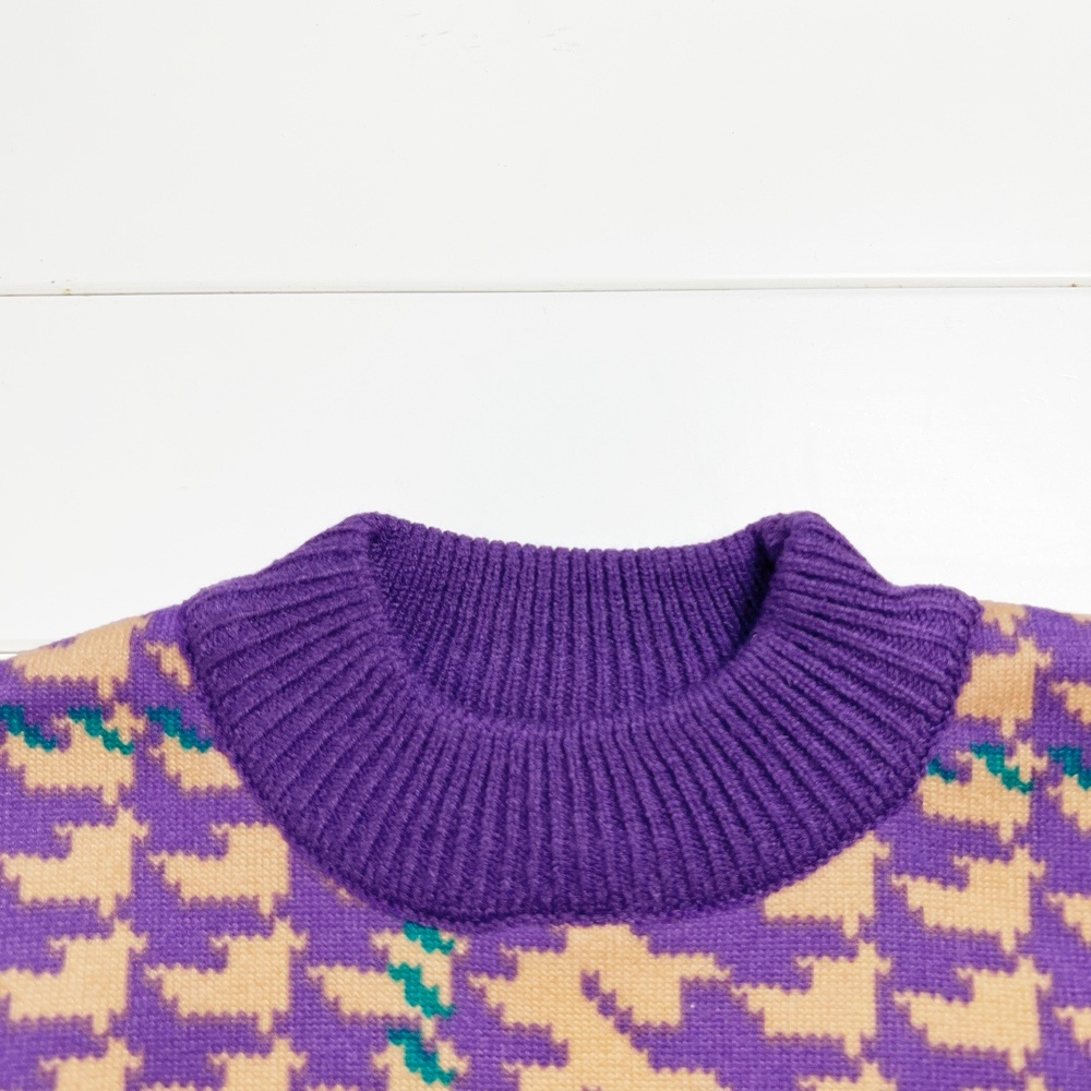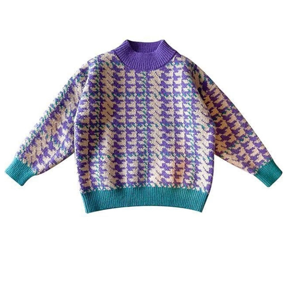紫繽紛千鳥紋中高領針織毛衣 針織衫 長袖毛衣 針織毛衣 線衫 女童 童裝 橘魔法 兒童【p0061240411002】
