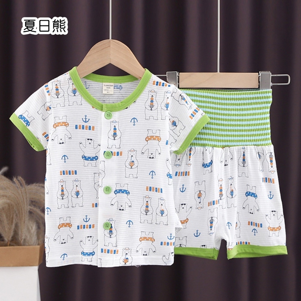 滿印透氣竹節棉護肚套裝 居家服 護肚褲 睡衣 套裝 男童 女童 中性款 中童 兒童 童裝【BB8729】