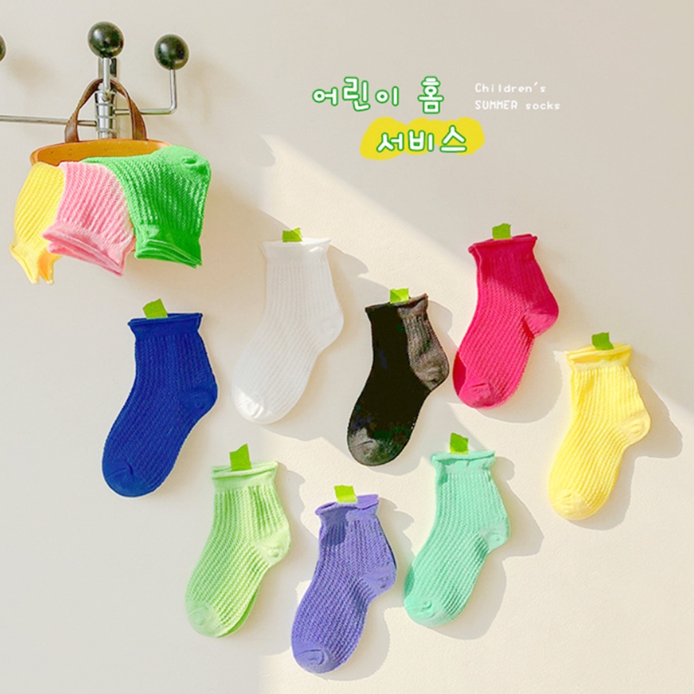 (小童優惠價)(4雙一組) 糖果色捲邊透氣網眼中筒襪 白色襪子 學生襪 襪子 兒童 中性款 男童 女童【BB7754】