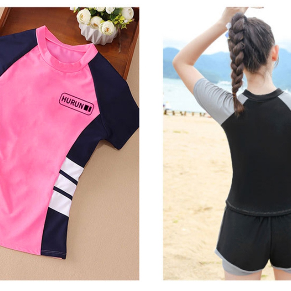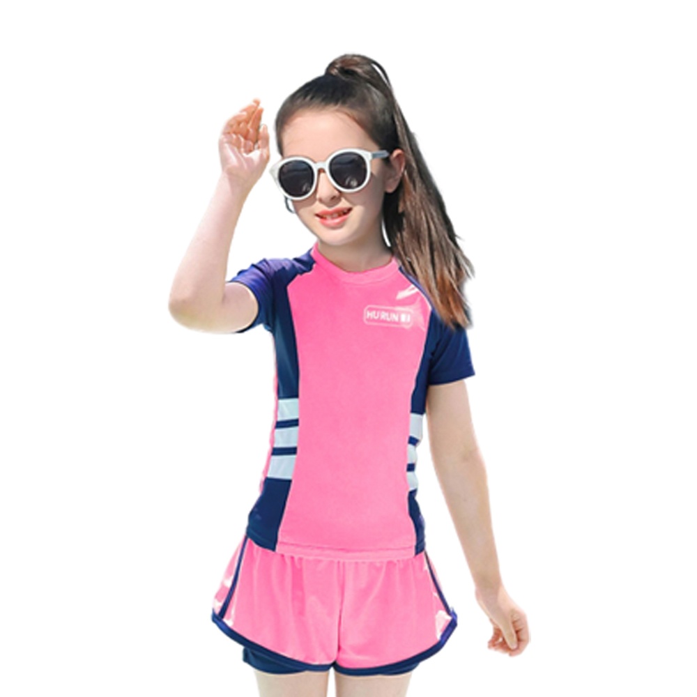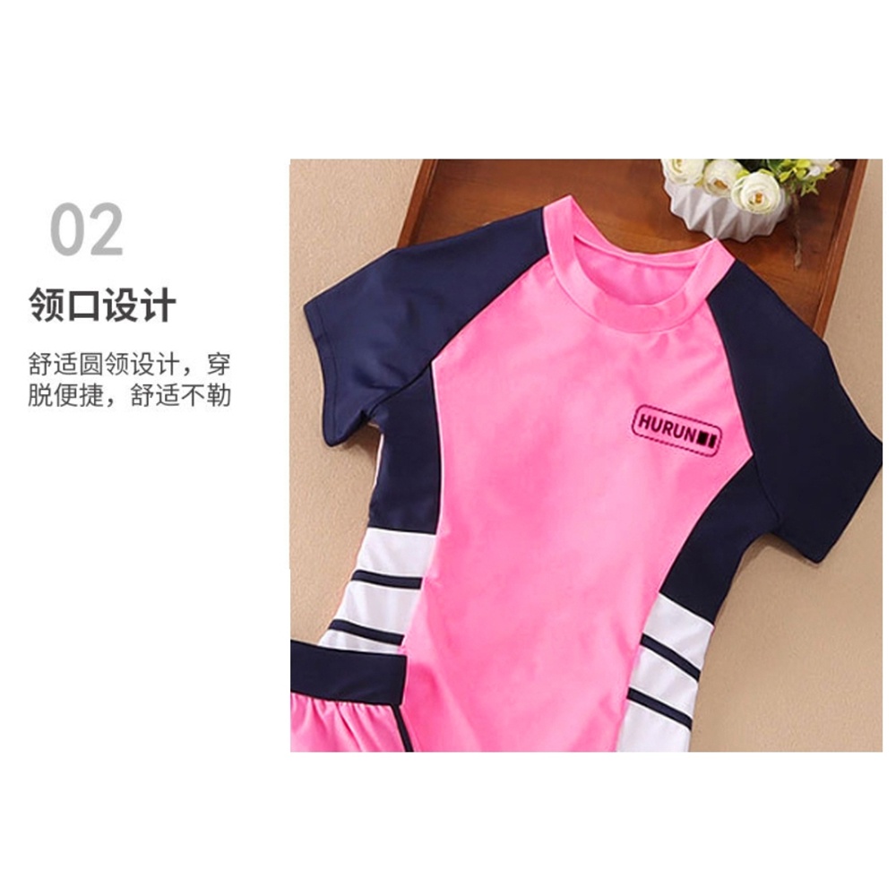大童 撞色運動插肩泳衣+平口泳褲 內有安全褲 游泳課 泳裝 學生泳衣 女童 橘魔法【p0061237704403】