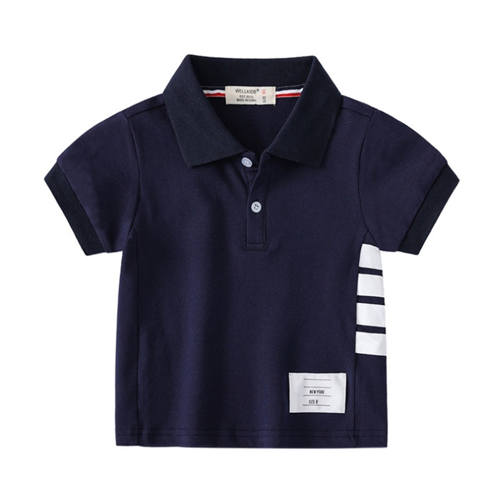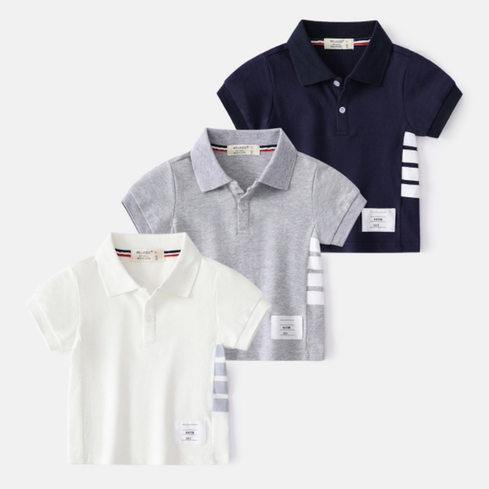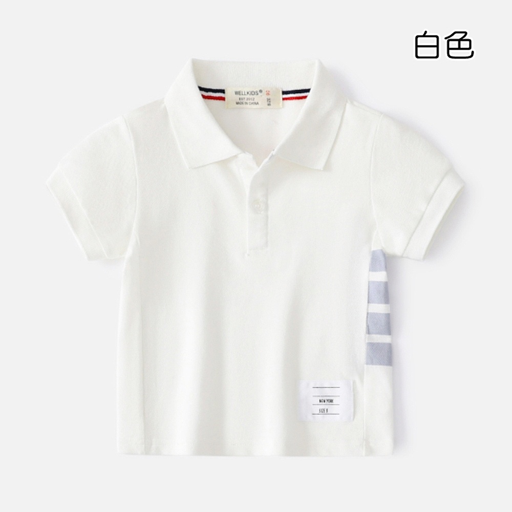 (小童優惠價)單側邊槓條棉質翻領POLO衫 短袖上衣 襯衫 休閒衫 運動 橘魔法 兒童 童裝 男童【BB7725】