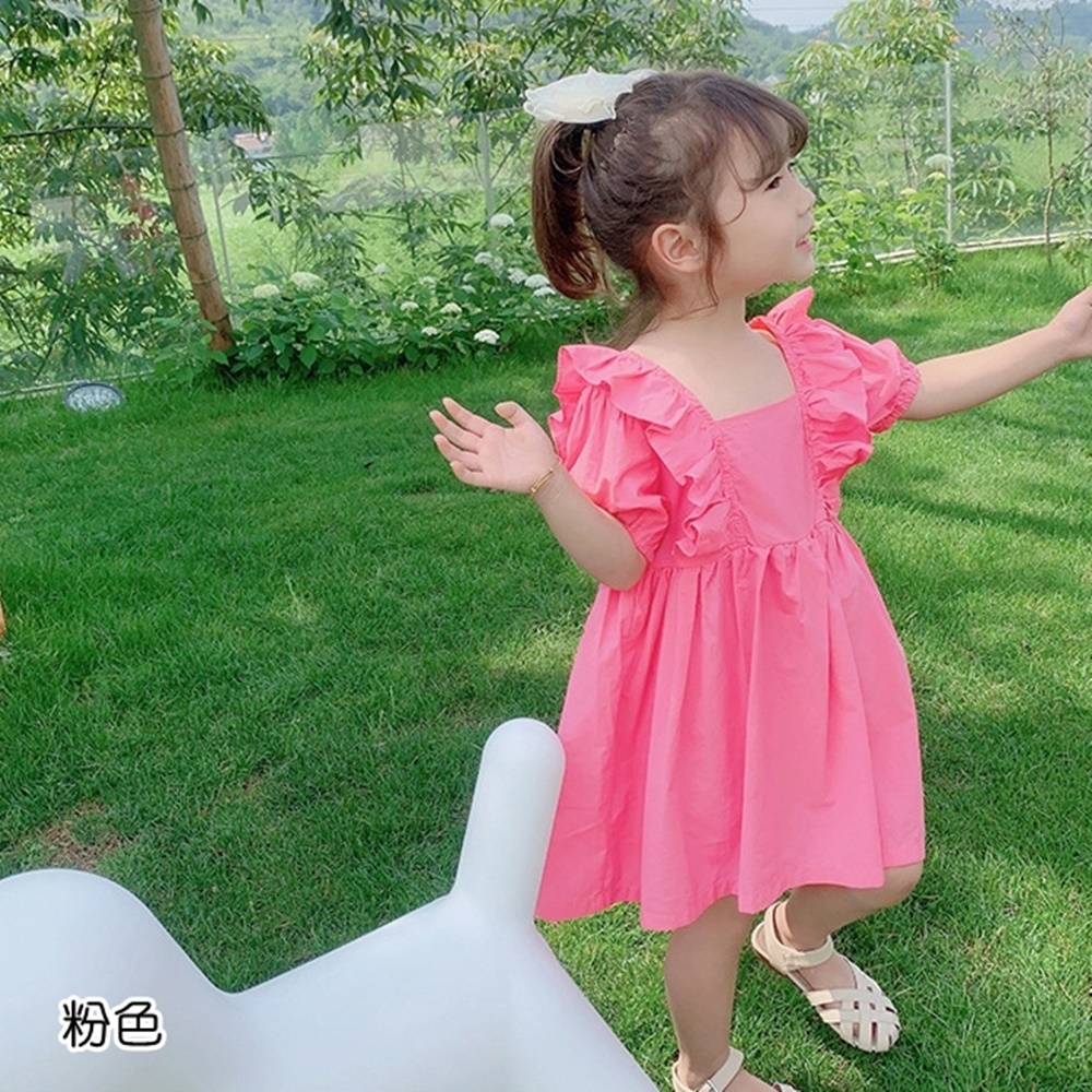 甜美立體荷葉袖連身洋裝 連身裙 女童 童裝 兒童 橘魔法 現貨【BB7755】