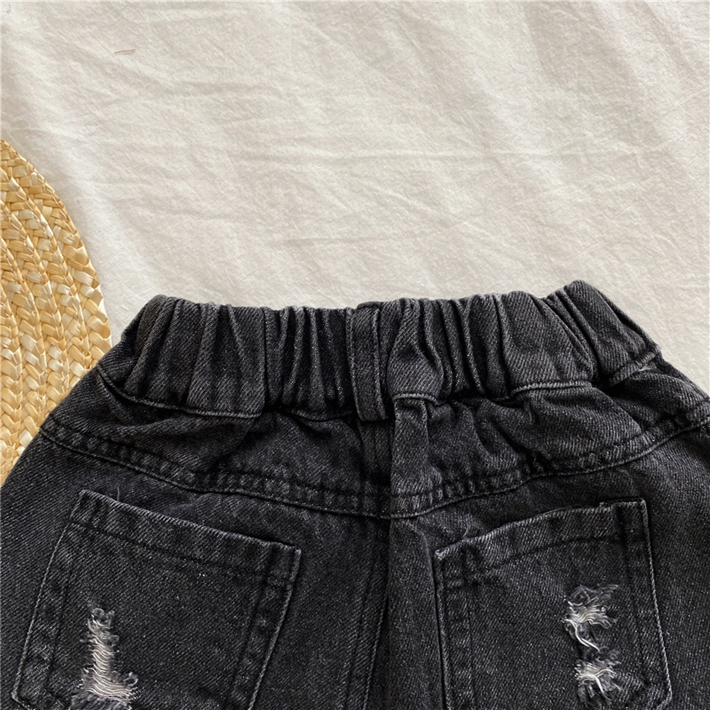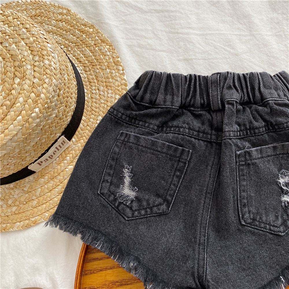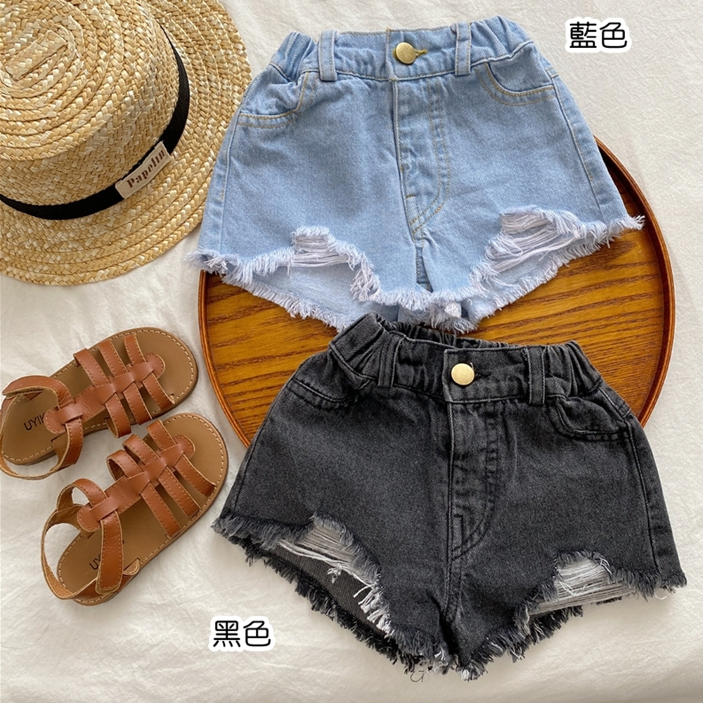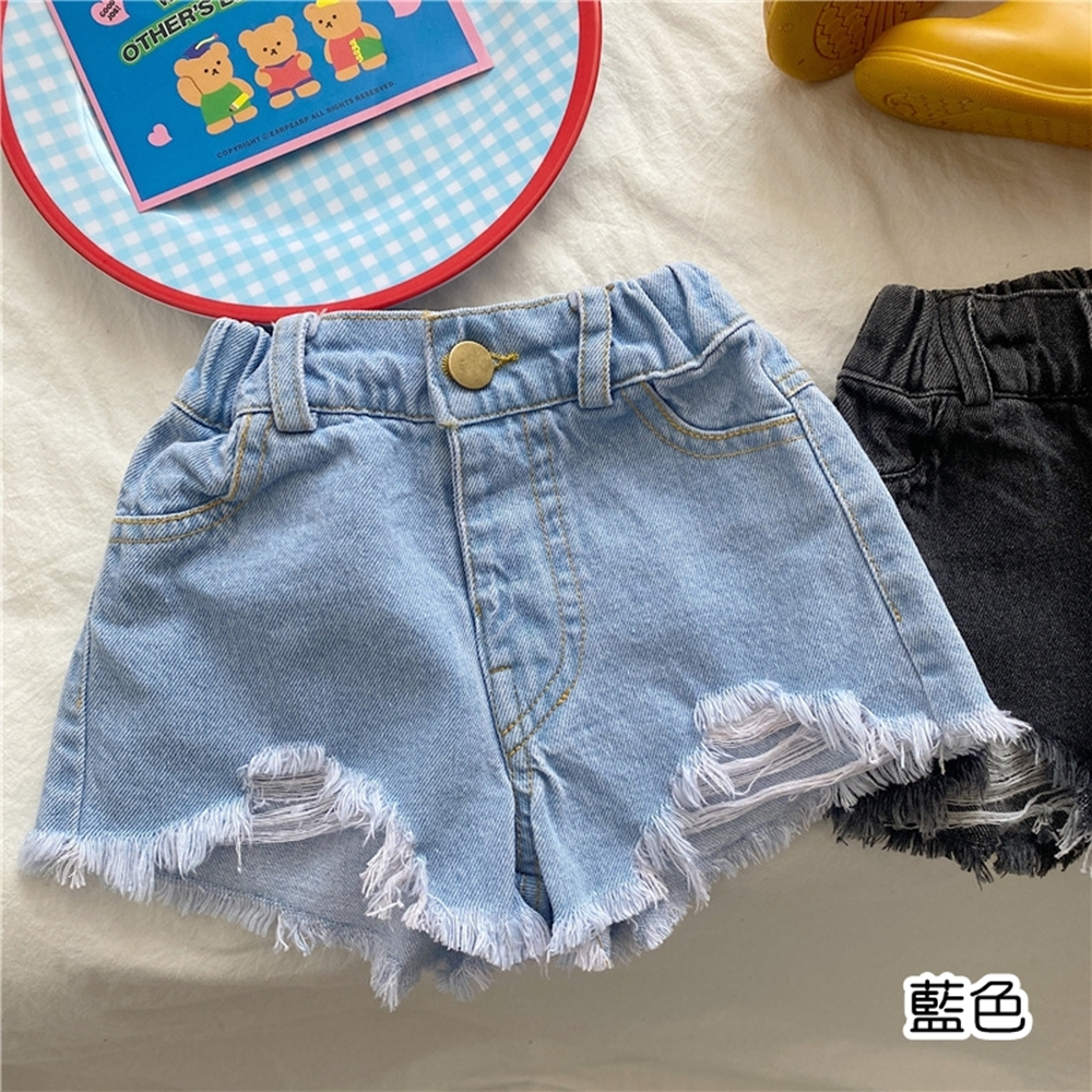 刷破鬚邊鬆緊褲頭牛仔短褲 短褲 牛仔褲 褲子 女童 兒童 童裝 童褲 橘魔法【BB8245】