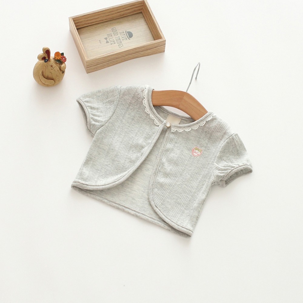 素面 草莓蕾絲簍空單扣小外套 短袖外套 薄外套 禮服搭配 婚禮 喜宴 花童 女童 兒童 童裝 橘魔法 現貨【BB6981