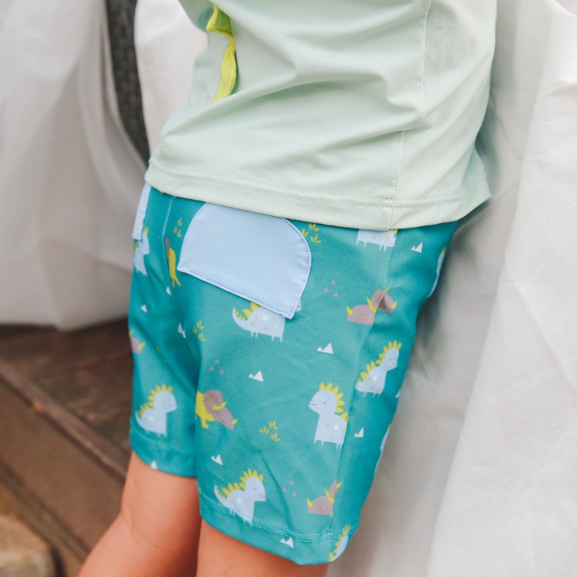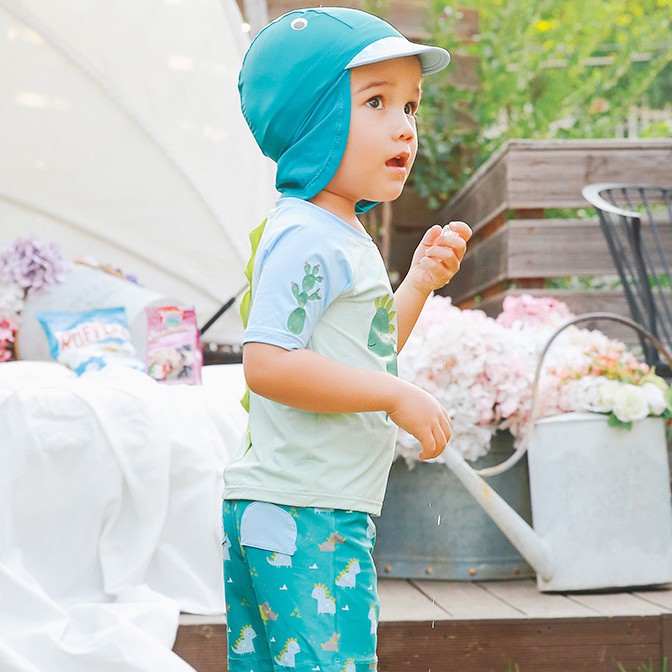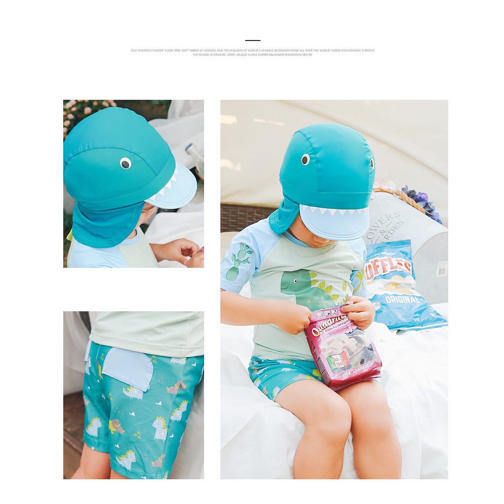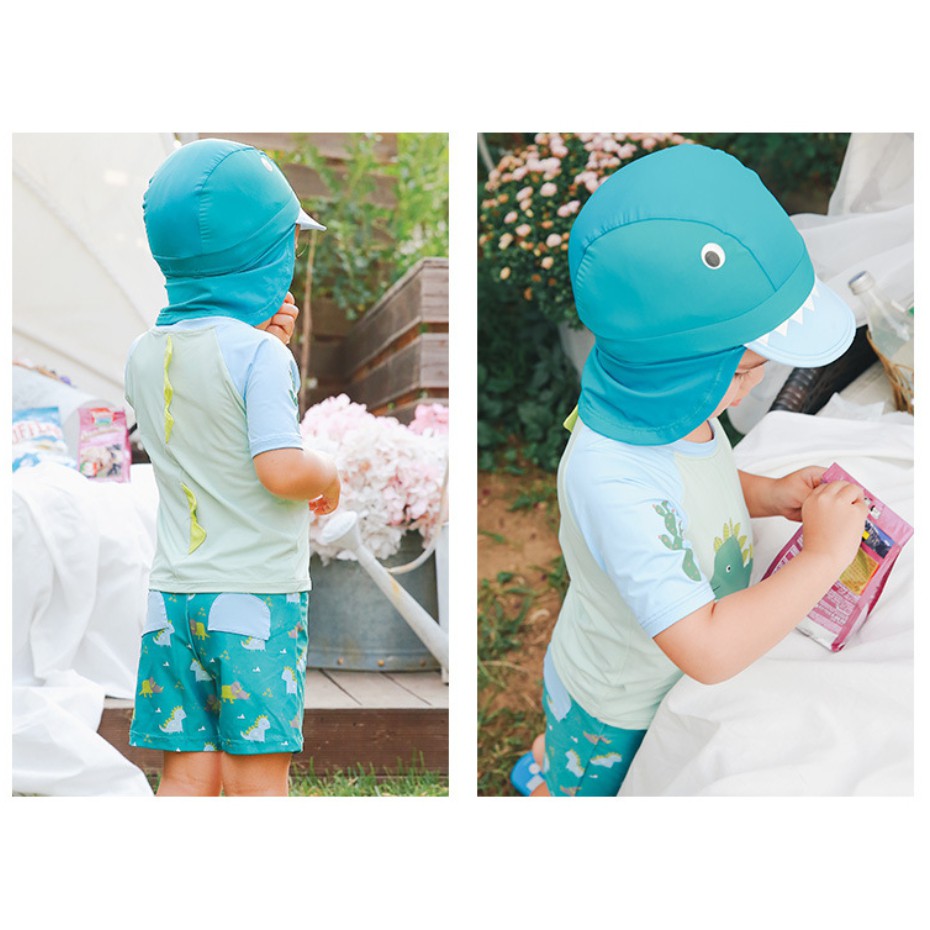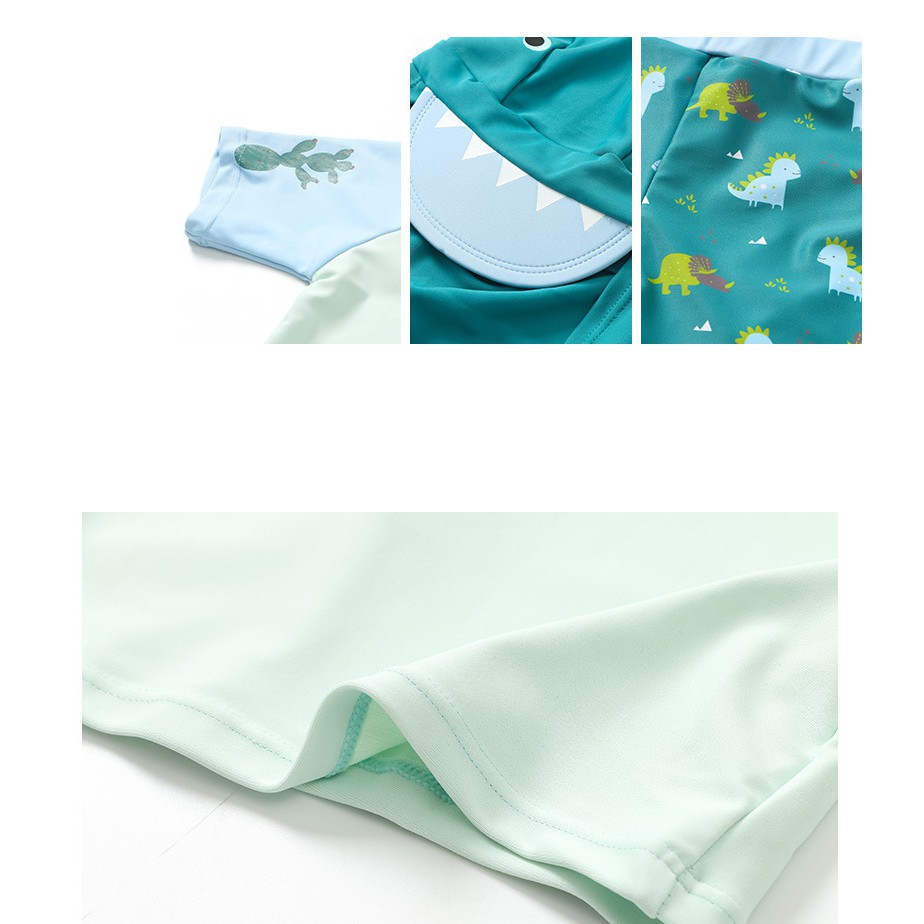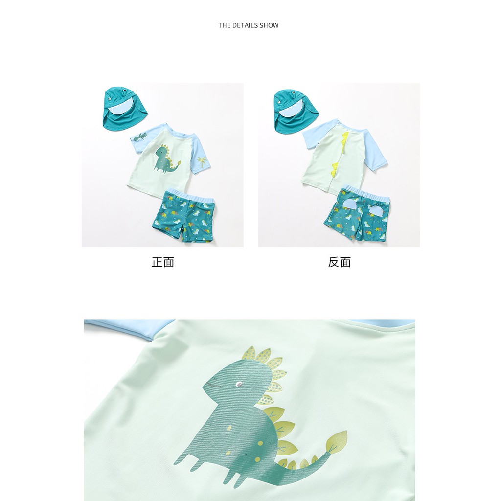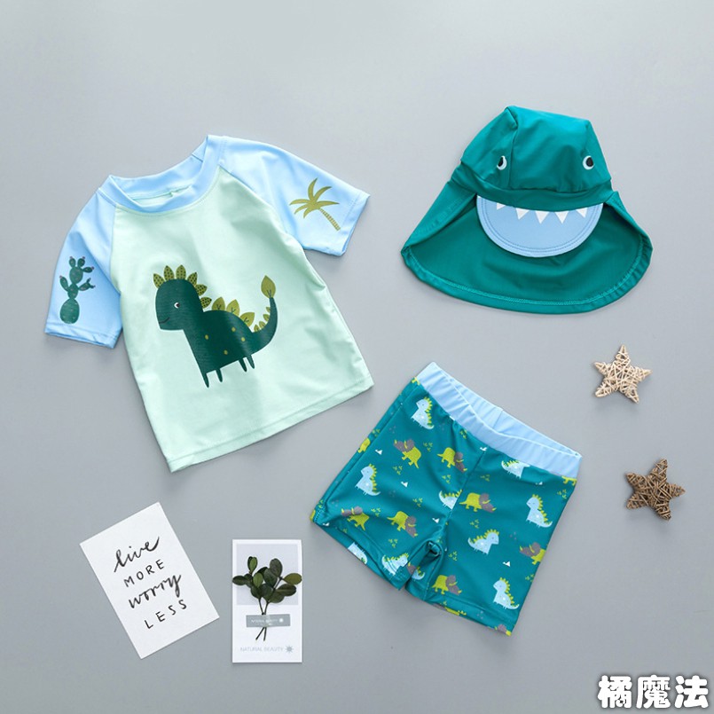 (惜福品) 短袖恐龍泳衣+泳褲+防曬泳帽 三件式 NG 瑕疵 福利品 出清