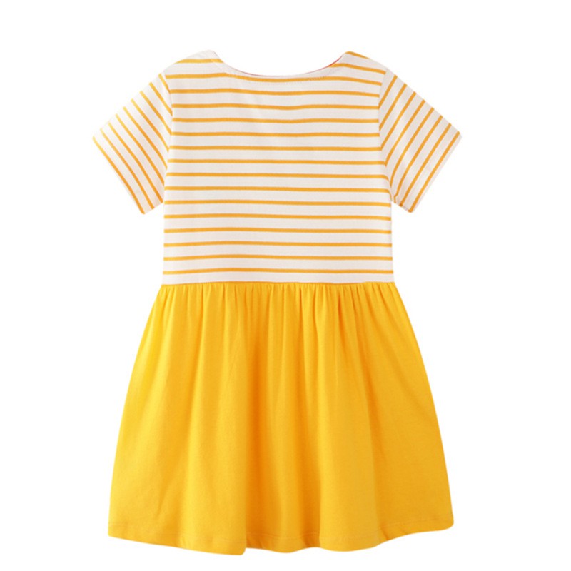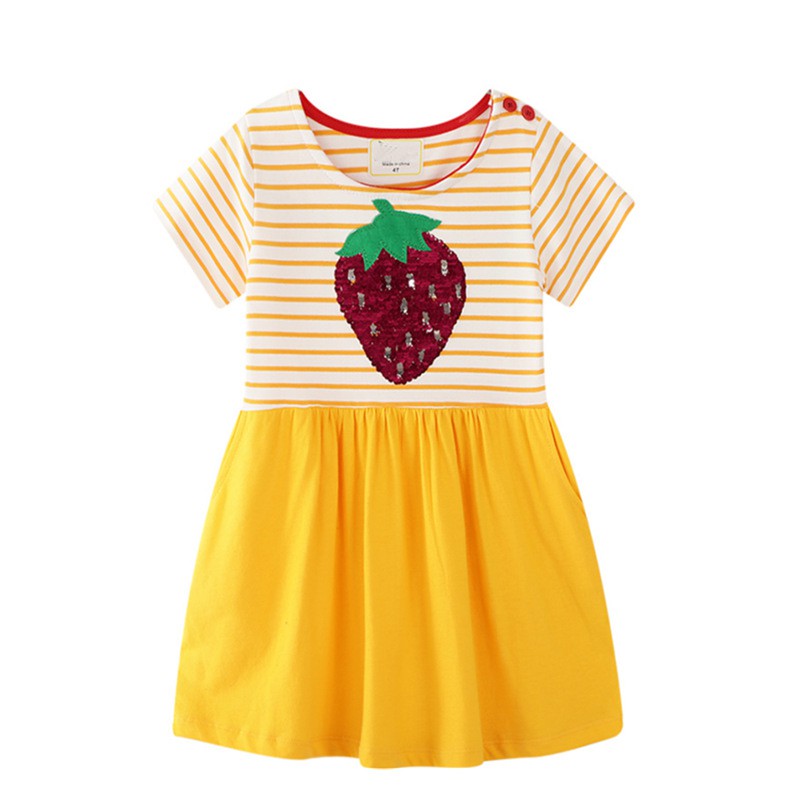黃條紋草莓亮片拼接小洋裝 連身裙 兒童 女童 兒童 洋裝 橘魔法 現貨【BB6201】