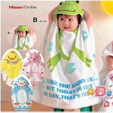 兔子.青蛙.企鵝.鴨子.長頸鹿.乳牛 套頭兒童連帽浴巾 橘魔法 現貨在台灣 沙灘 玩水【p0061154785593】