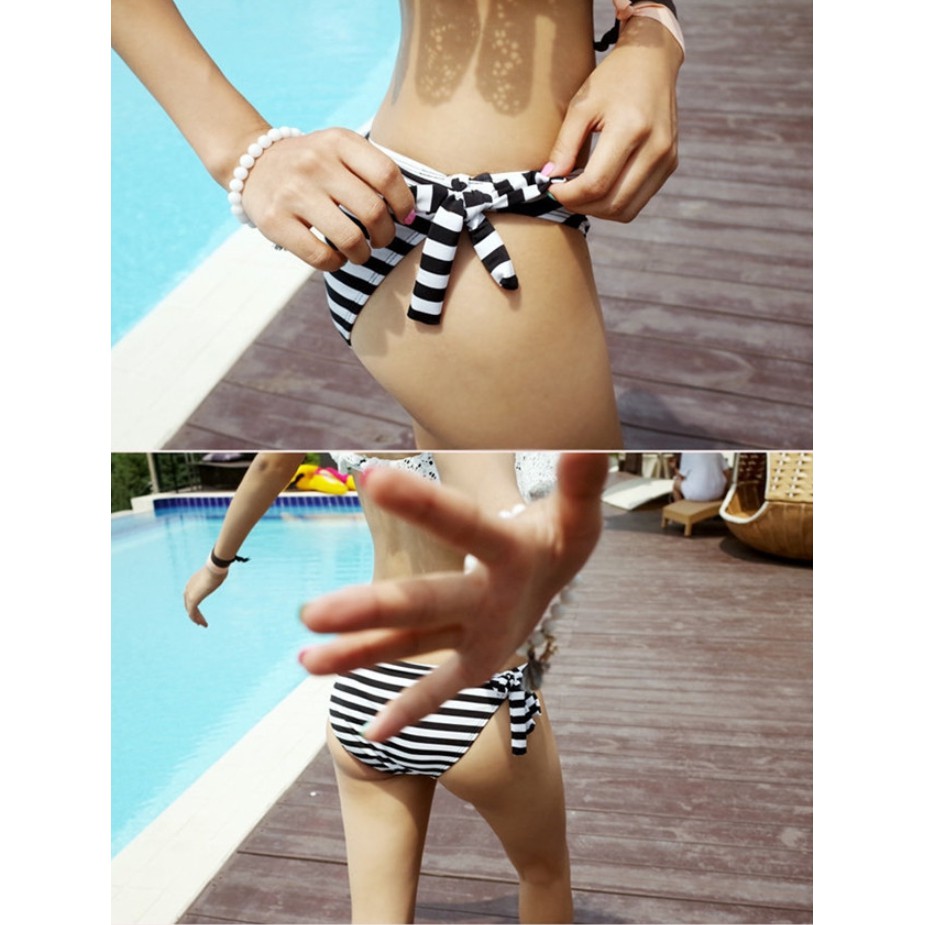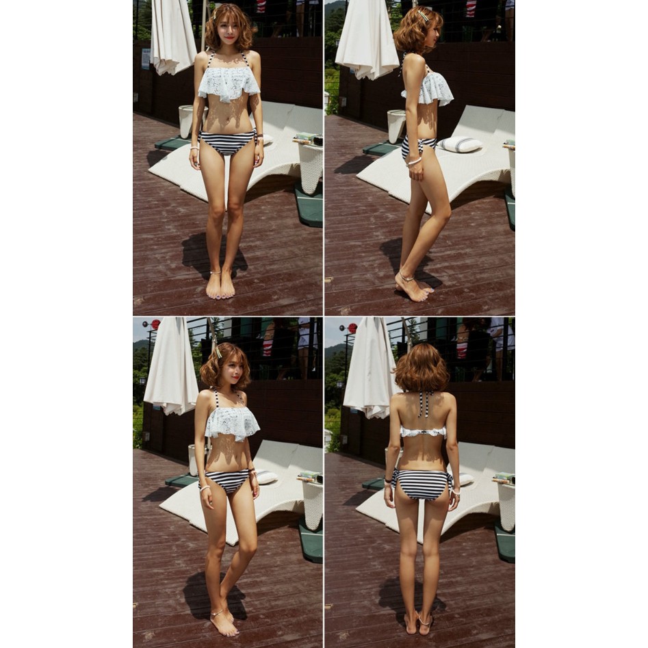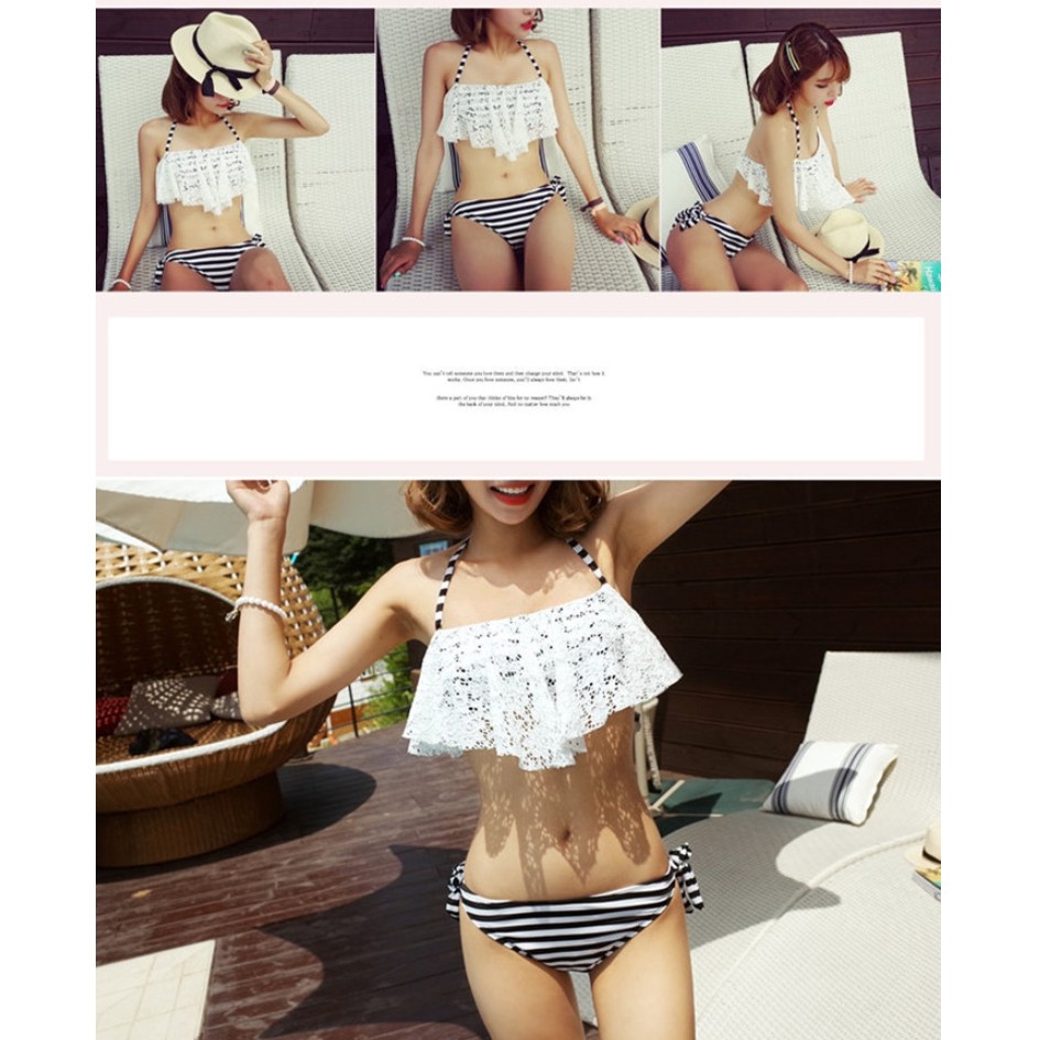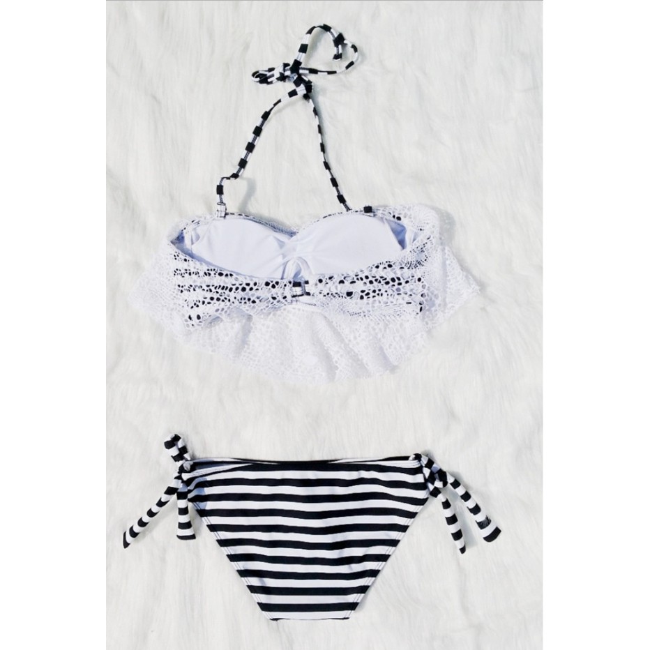 勾花蕾絲 黑白條紋鋼圈美胸泳裝 比基尼 泳衣 橘魔法【p0061141669125】