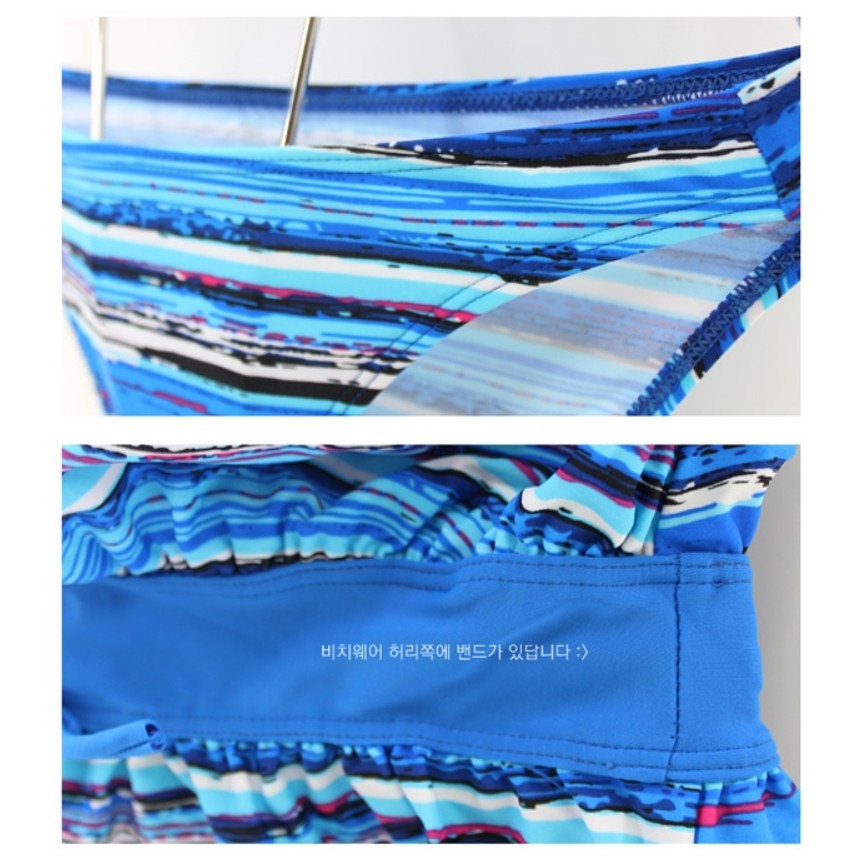 顯瘦 泳裝 條紋連身洋裝罩衫+繞頸比基尼泳裝 3件式 情侶款 橘魔法 G 現貨在台灣【p0061155973400】