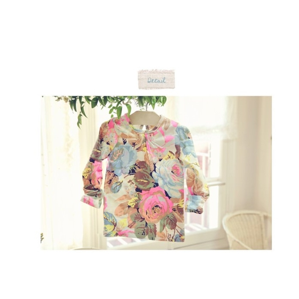 輕柔抓皺印花長袖上衣 童裝 女童 兒童 橘魔法 現貨【BB7671】