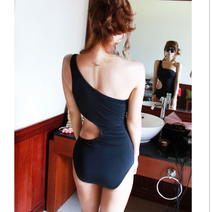 酷帥個性單肩斜肩黑色 露腰 挖腰 連身 泳裝 比基尼 泳衣 橘魔法 現貨在台灣 顯瘦【p0061187322798】