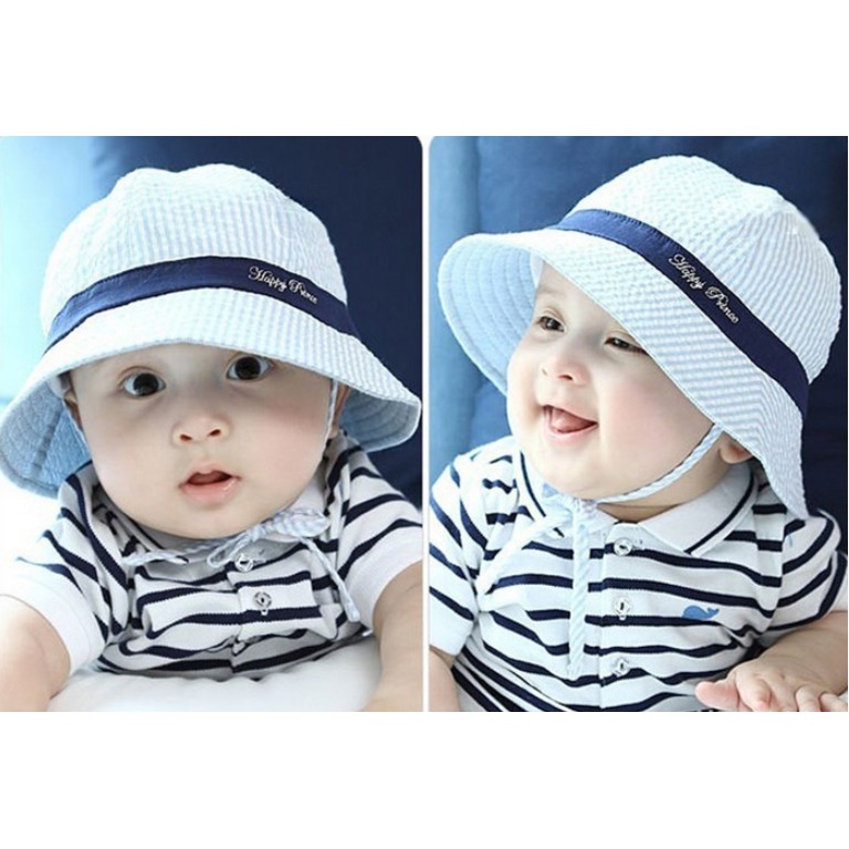 小童條紋遮陽帽 盆帽.圓帽 防曬帽 有防風繩 橘魔法 兒童 嬰兒 小童【p0061184792424】