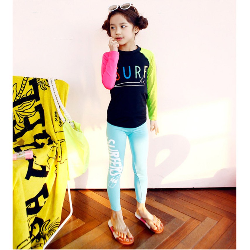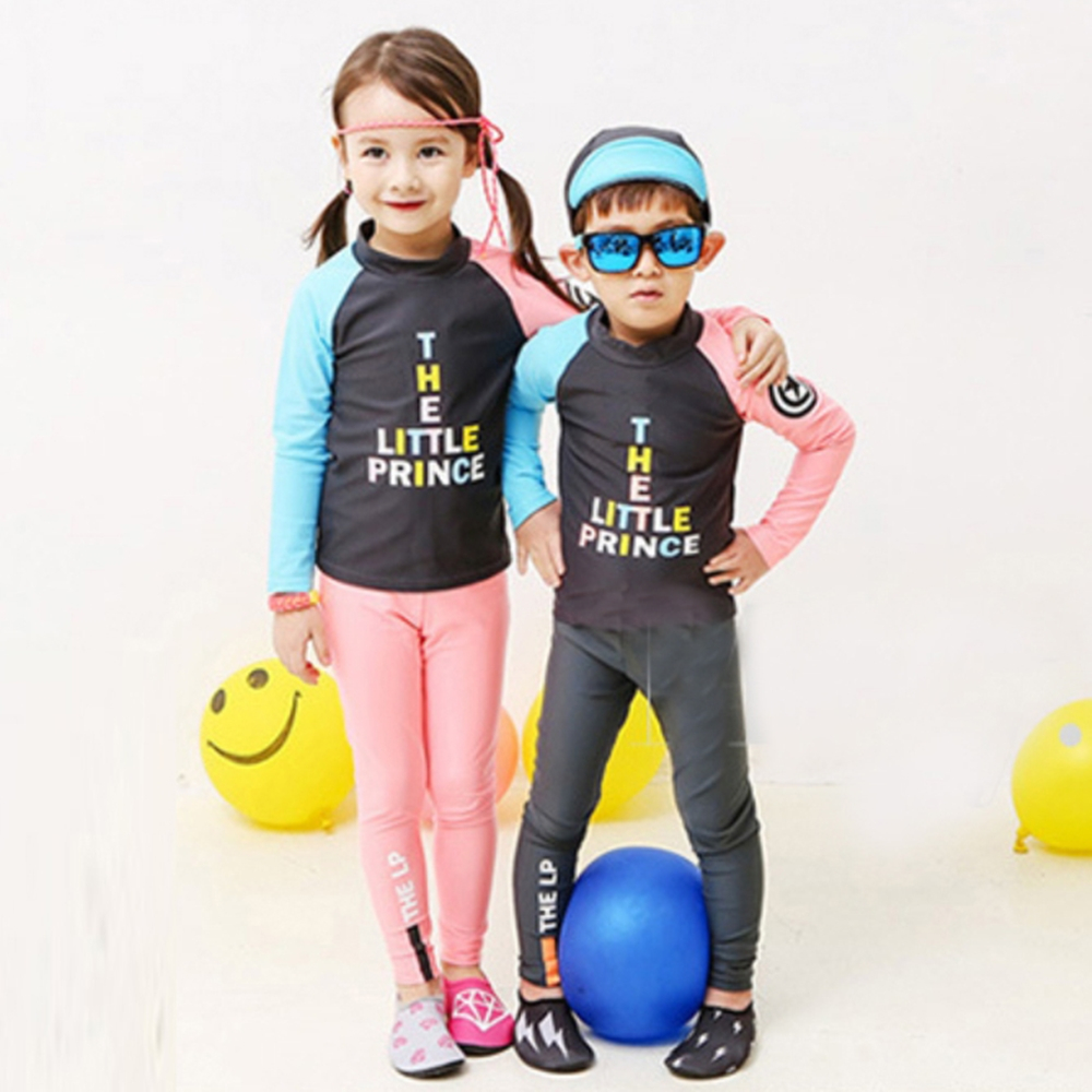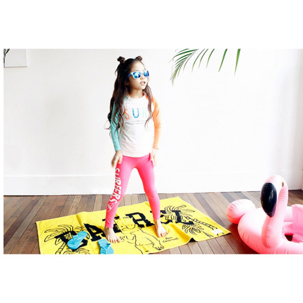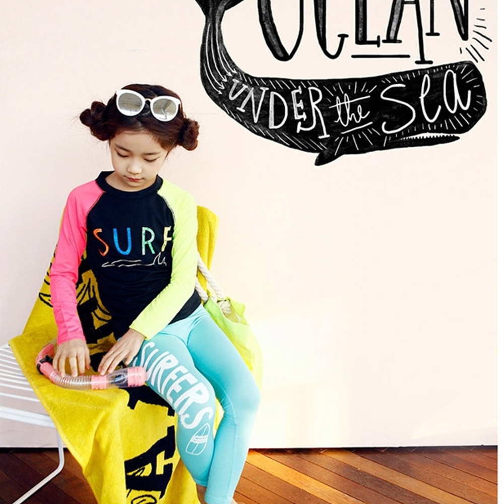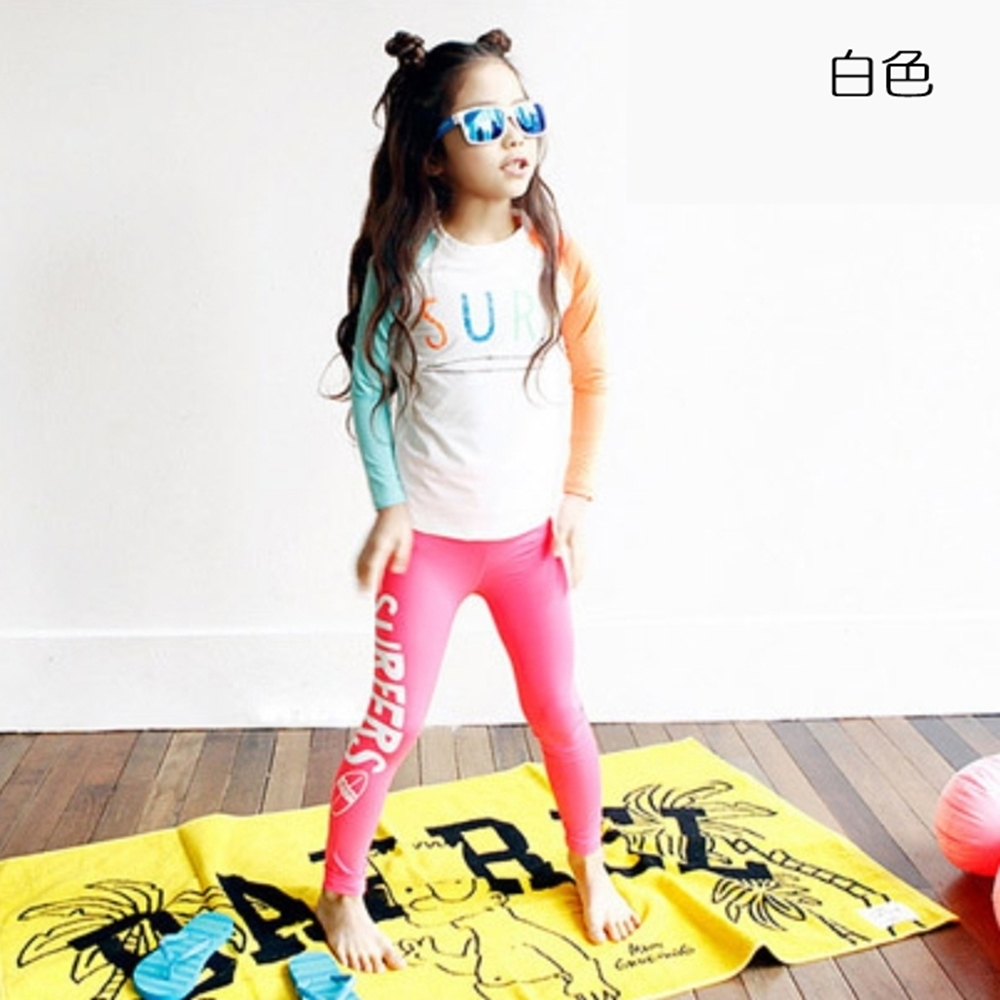 繽紛拚色插肩防曬長袖泳衣+長褲 2件式 泳裝 女童 男童 兒童 童裝 水母衣 泳褲 水母褲 防曬 橘魔法【BB9448】