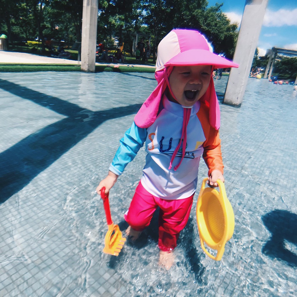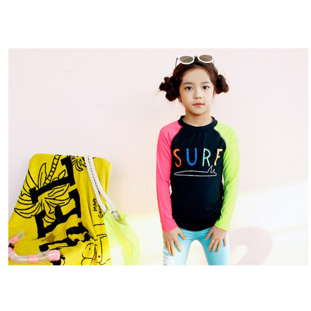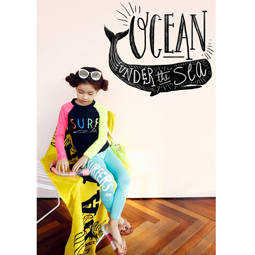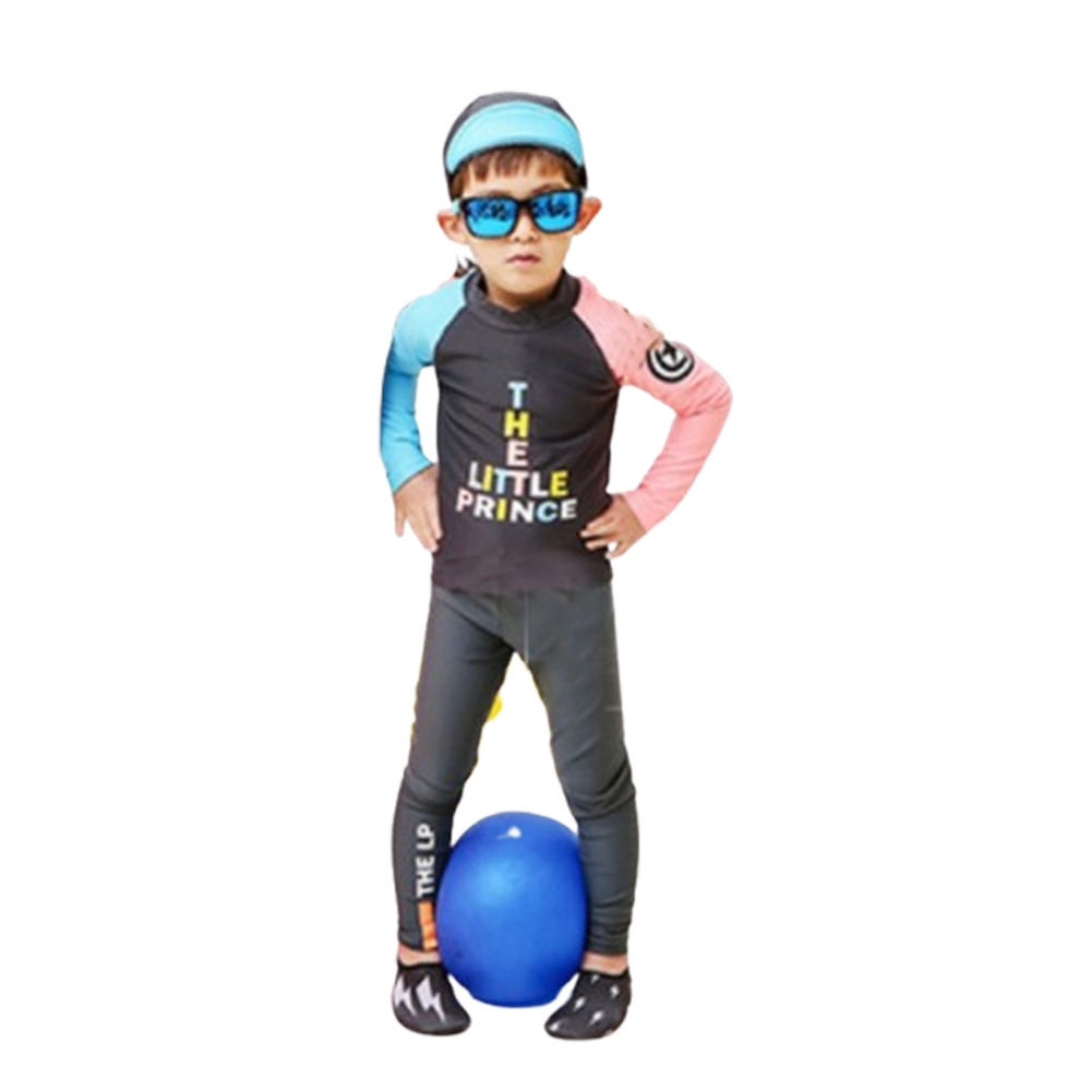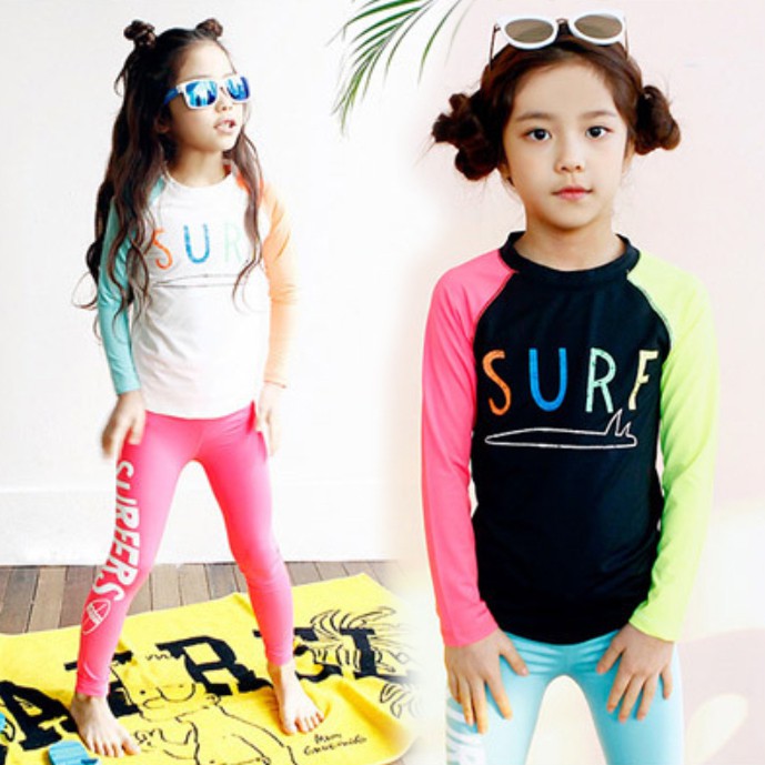 繽紛拚色插肩防曬長袖泳衣+長褲 2件式 泳裝 女童 男童 兒童 童裝 水母衣 泳褲 水母褲 防曬 橘魔法【BB9448】