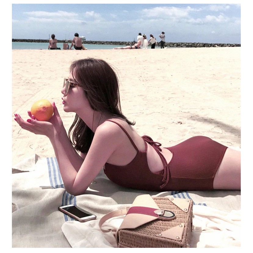 露背綁帶經典素色復古連身泳衣 泳裝 連身泳衣 一件式 泳裝 泳衣橘魔法 現貨在台灣 泳裝【p0061192784697】