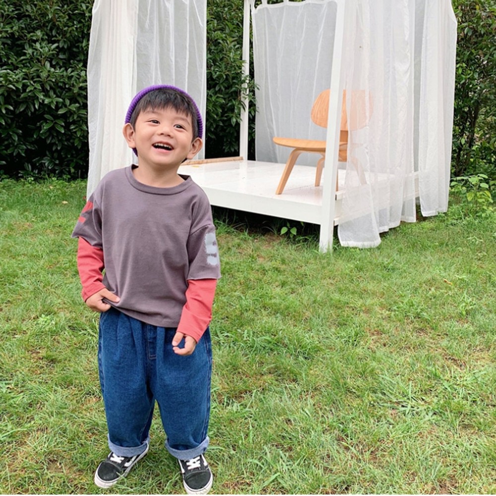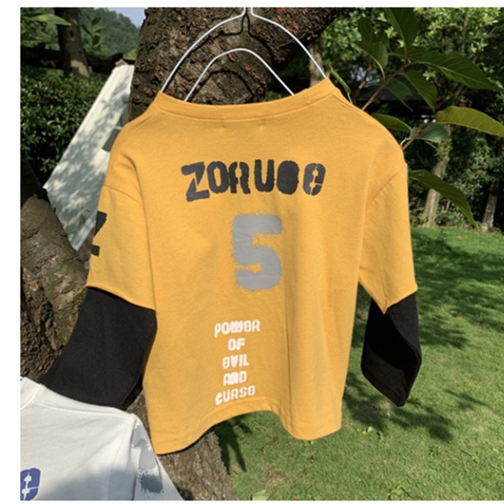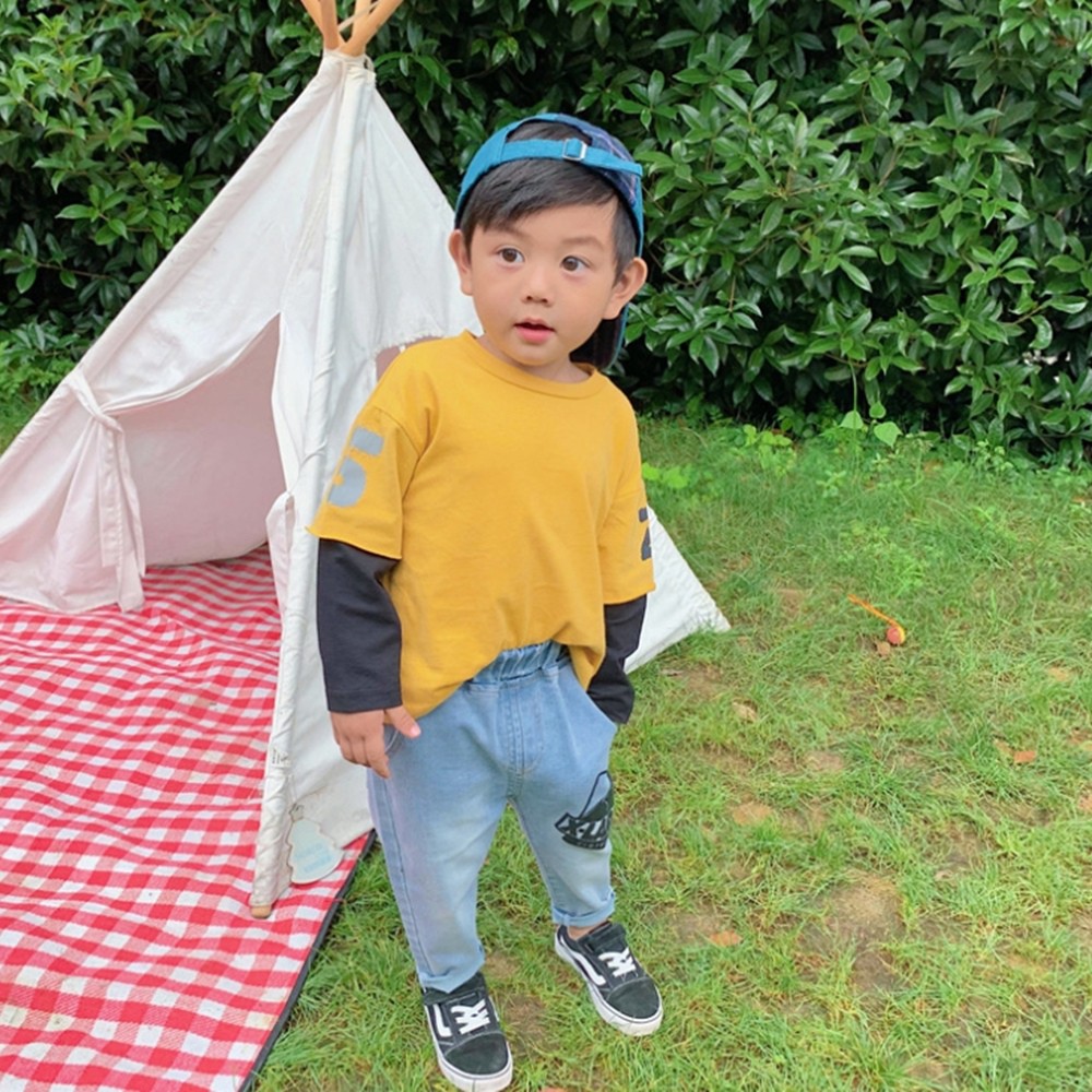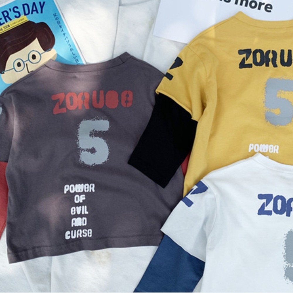 印花假兩件式長袖上衣 T恤 長袖上衣 男童 薄長袖 橘魔法 現貨在台灣 兒童 童裝【p0061193850338】