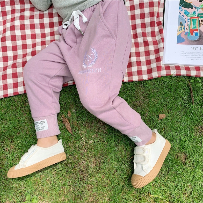 3色繡花貼布運動褲 兒童 褲子棉褲 縮口褲 長褲 男童 女童 中性款 橘魔法 現貨 童裝【p0061193896086】