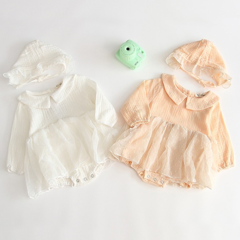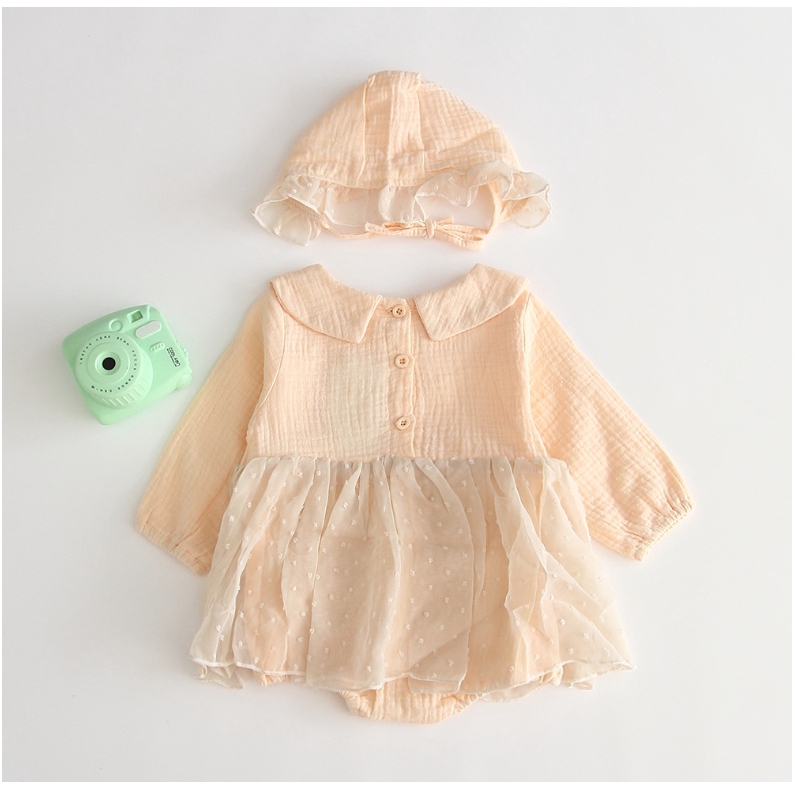 長袖紗裙包屁衣+帽子 哈裙 女童 兩件套 新生兒 滿月 周歲 橘魔法 現貨 童裝 嬰兒【p0061193898145】