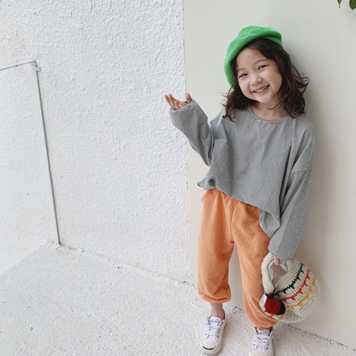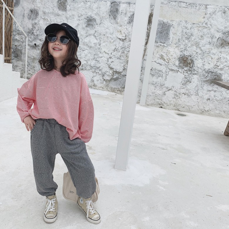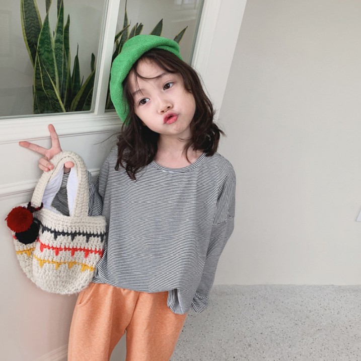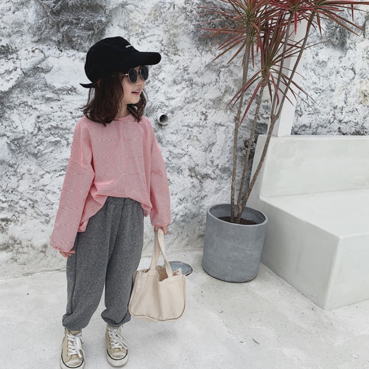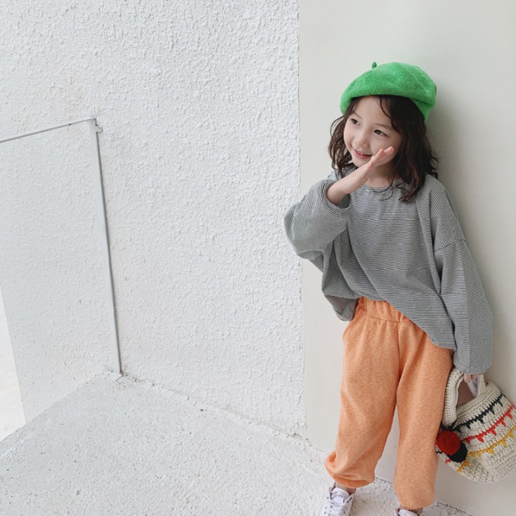 中性款百搭寬鬆條紋長袖上衣 薄長袖 秋裝 男童 女童 橘魔法 現貨 兒童 童裝 童 中童【BB7452】