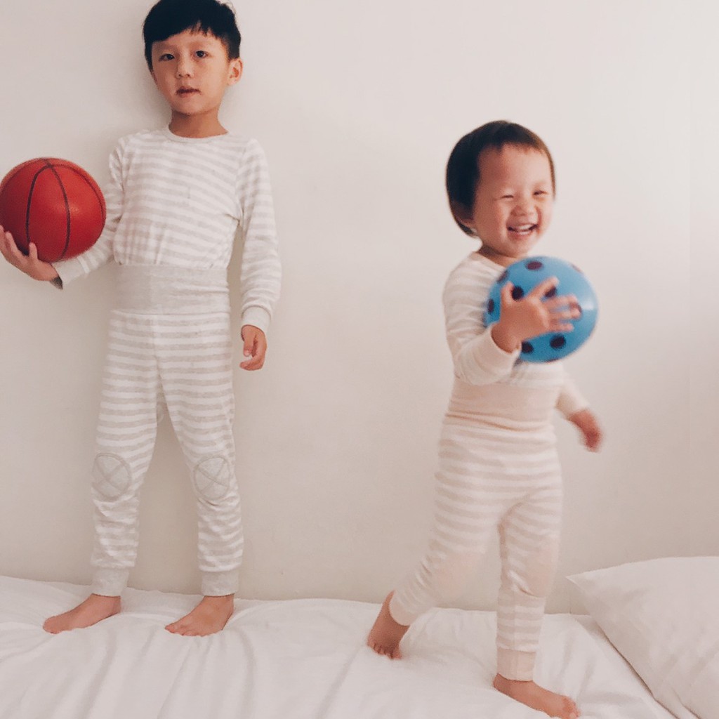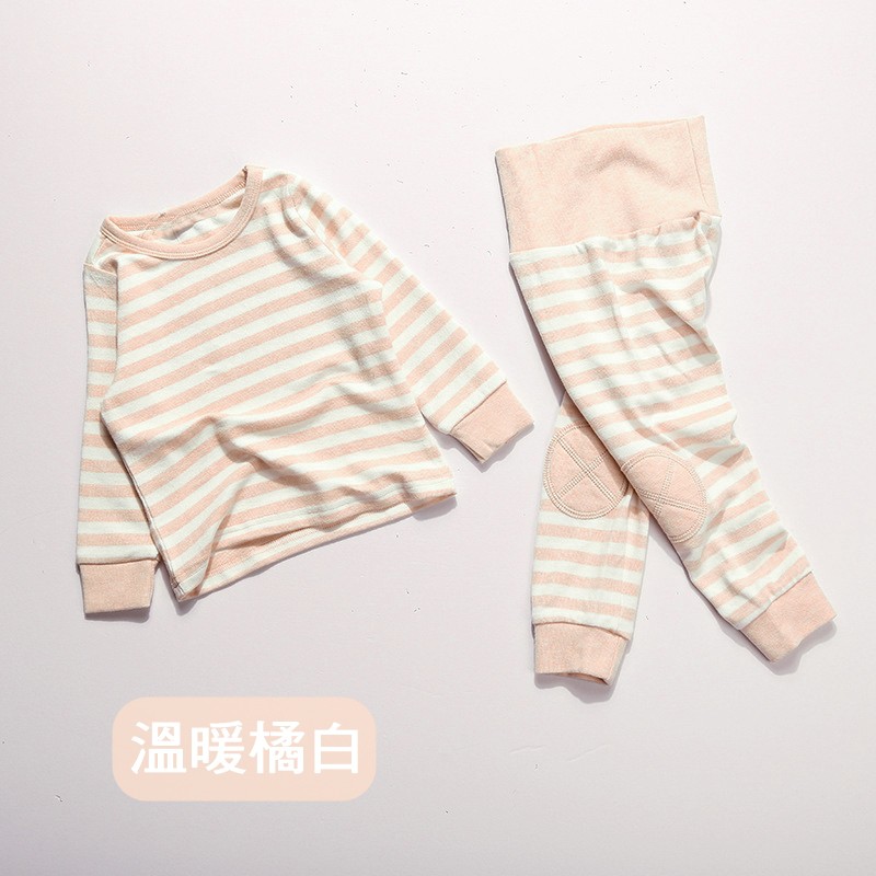棉柔條紋居家服長袖上衣+護肚長褲 套裝 睡衣 兒童 女童 男童 童裝 褲子 長褲 中性款 橘魔法 現貨【BB9312】