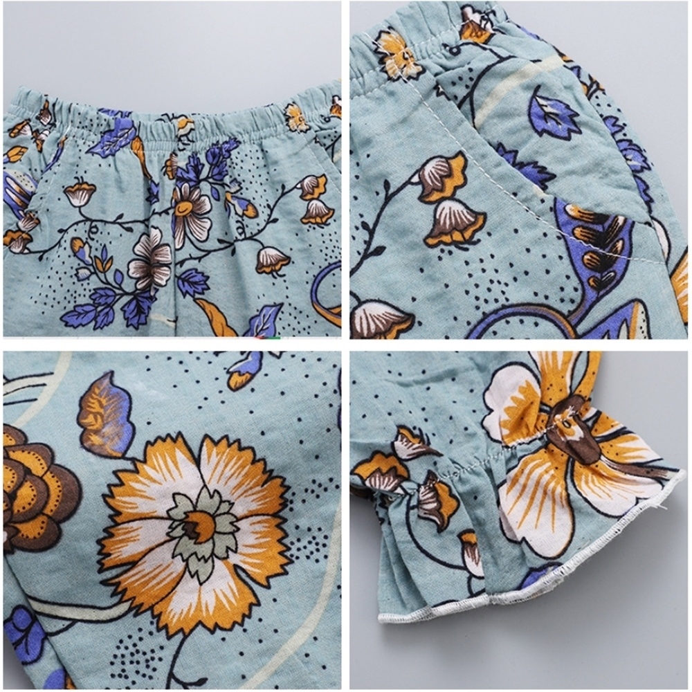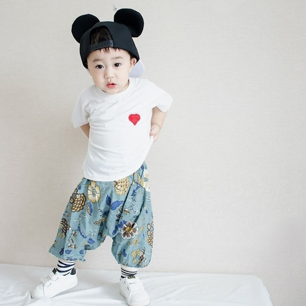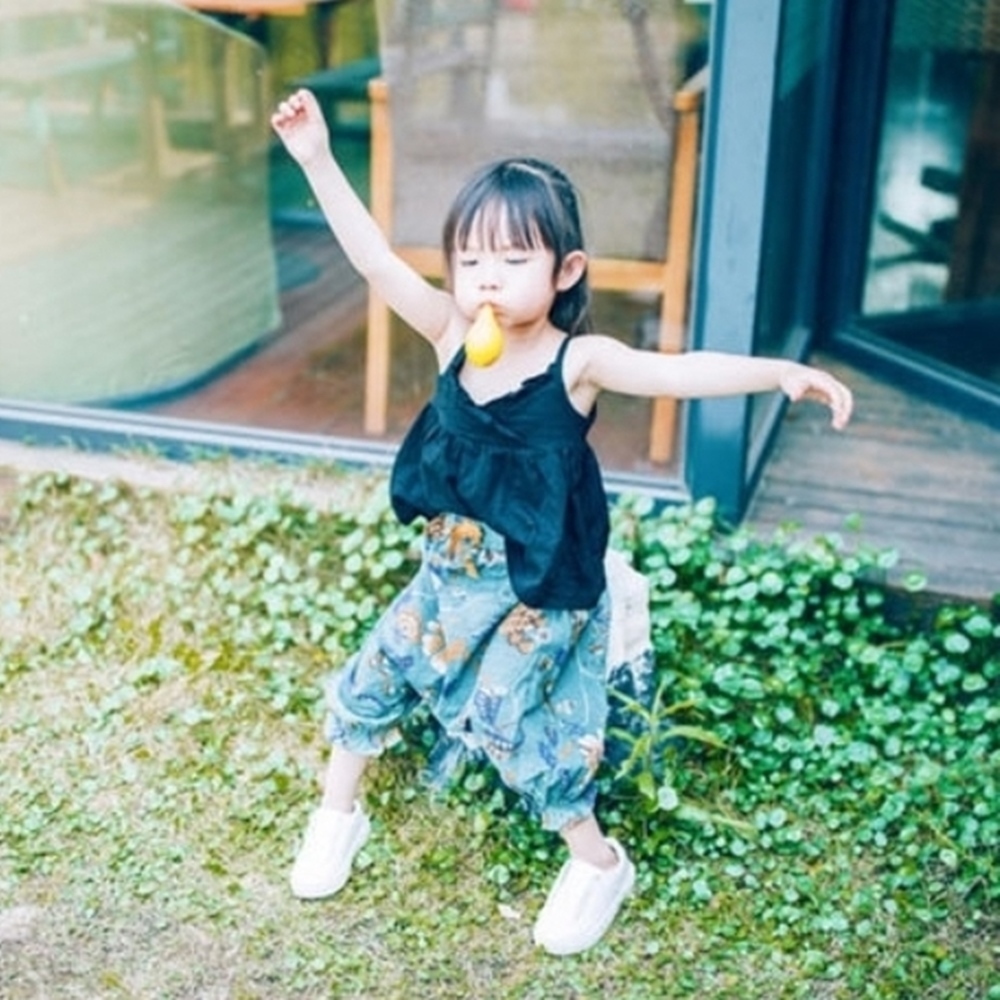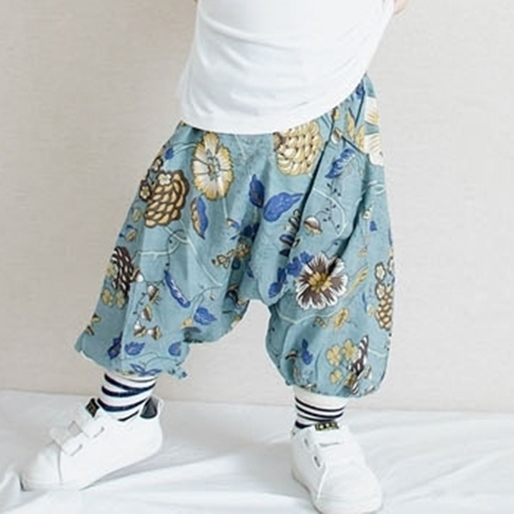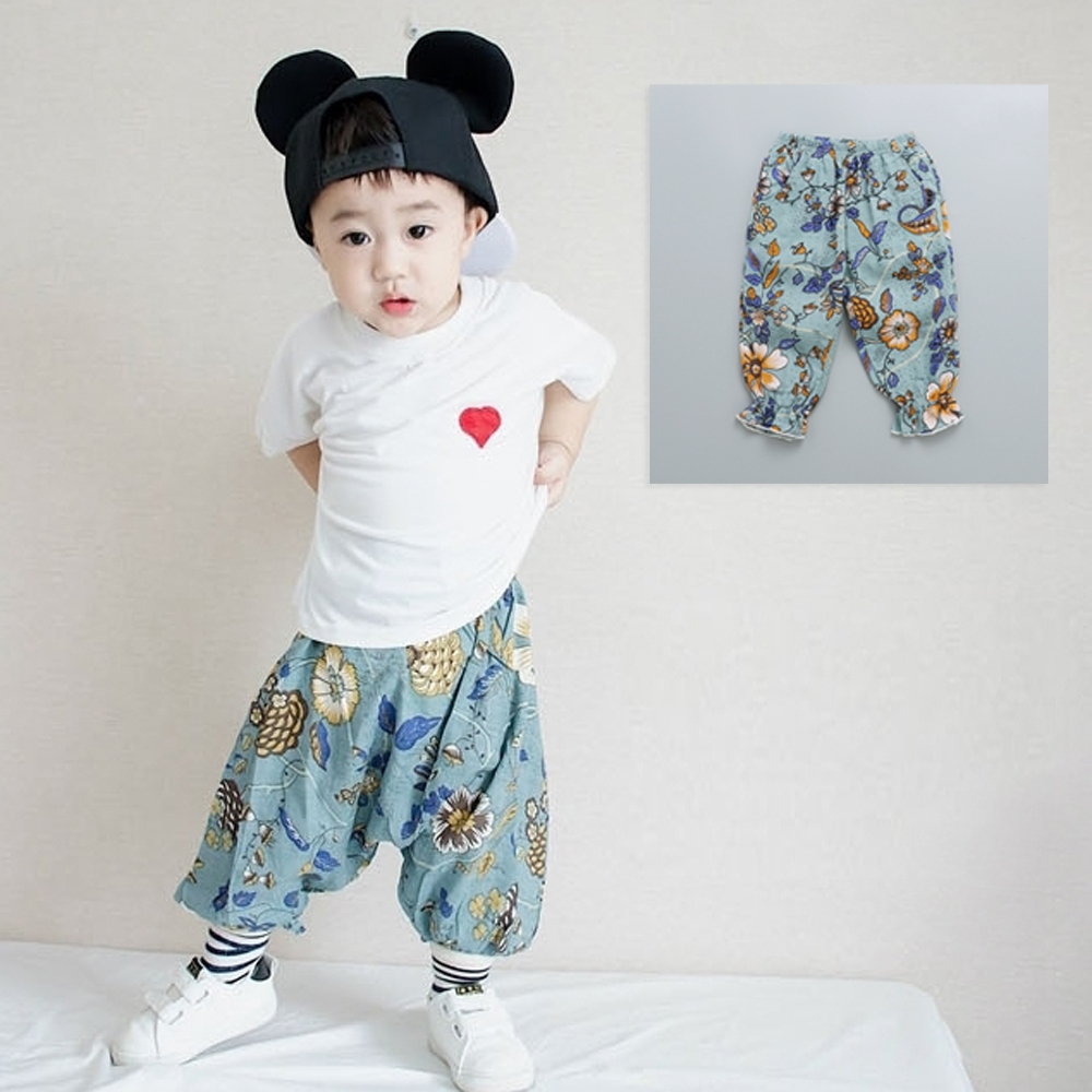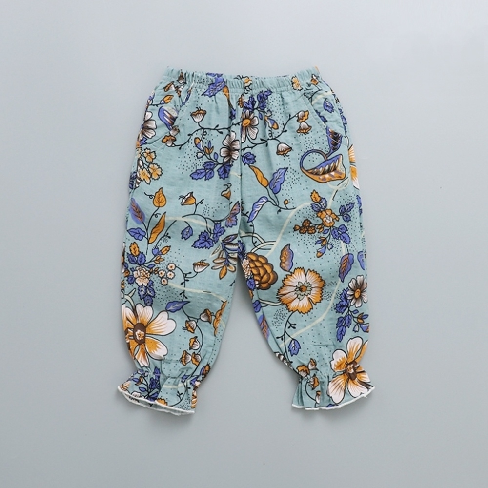 花朵棉麻七分褲 防蚊褲 燈籠褲 防蚊褲 長褲 褲子 縮口褲 薄長褲 女童 橘魔法 童裝 【BB8331】