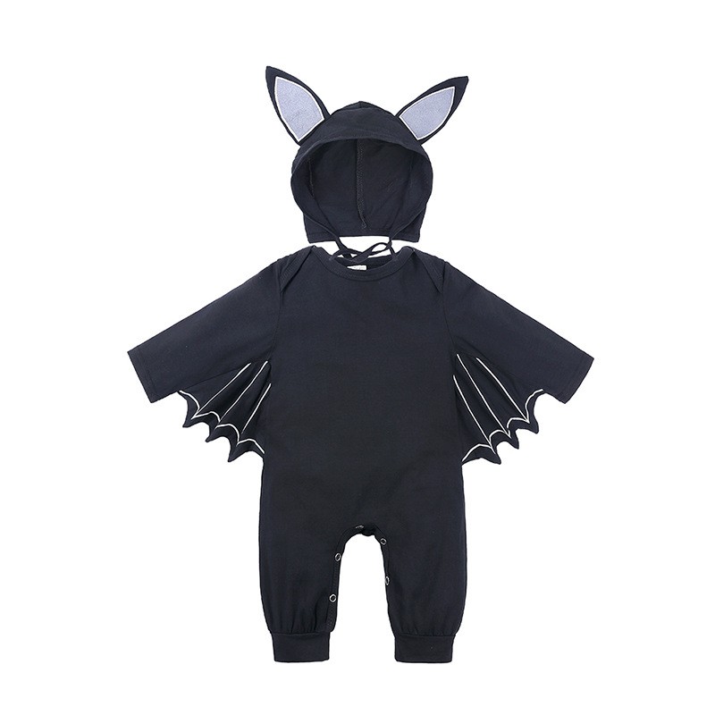萬聖節服裝 黑蝙蝠 帽子+長袖連身衣 造型包屁衣 男童 橘魔法 現貨童裝【p0061195072391】