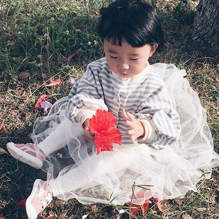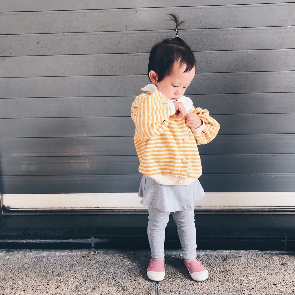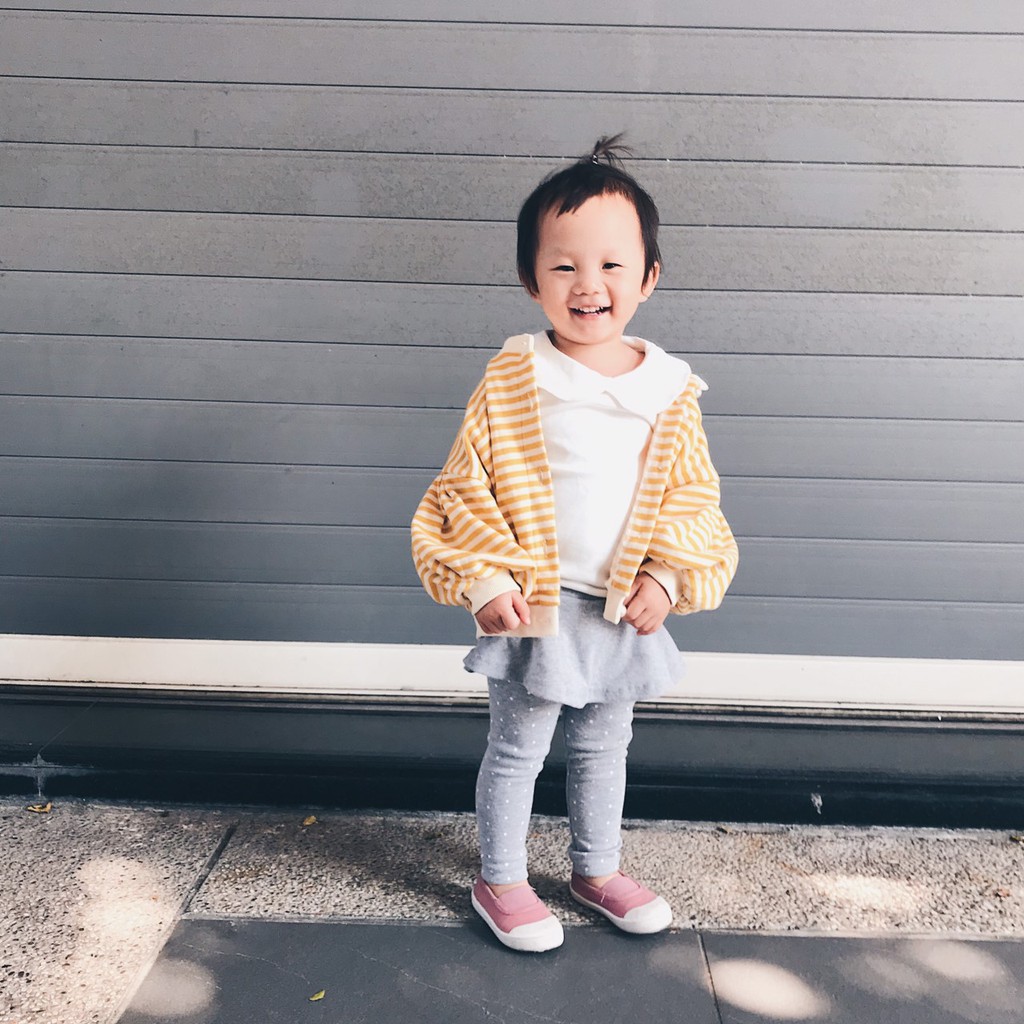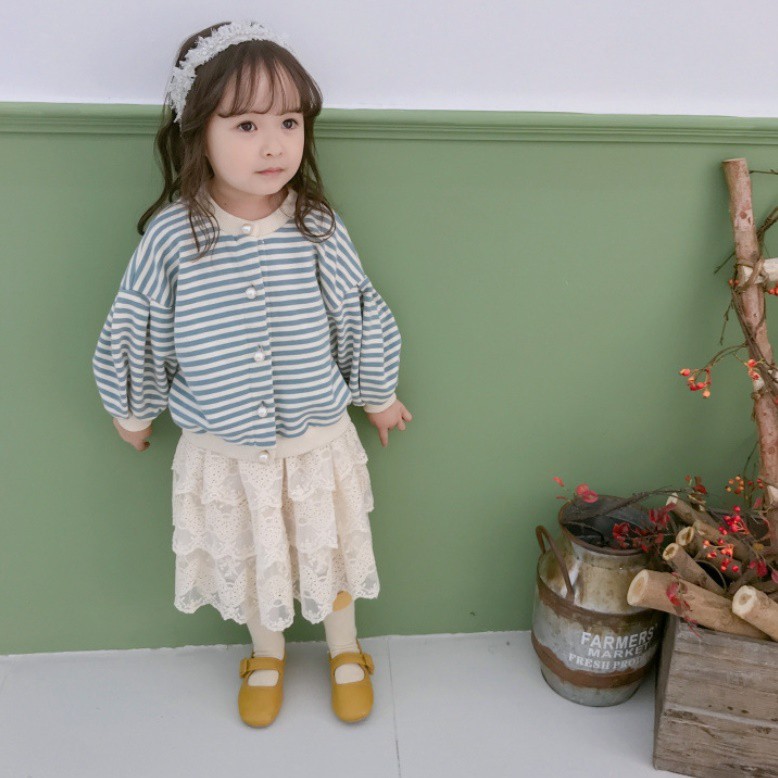 條紋珍珠釦落肩寬鬆外套 開衫 女童 薄外套 外套 泡泡袖 橘魔法 現貨在台灣 童裝【p0061195803777】