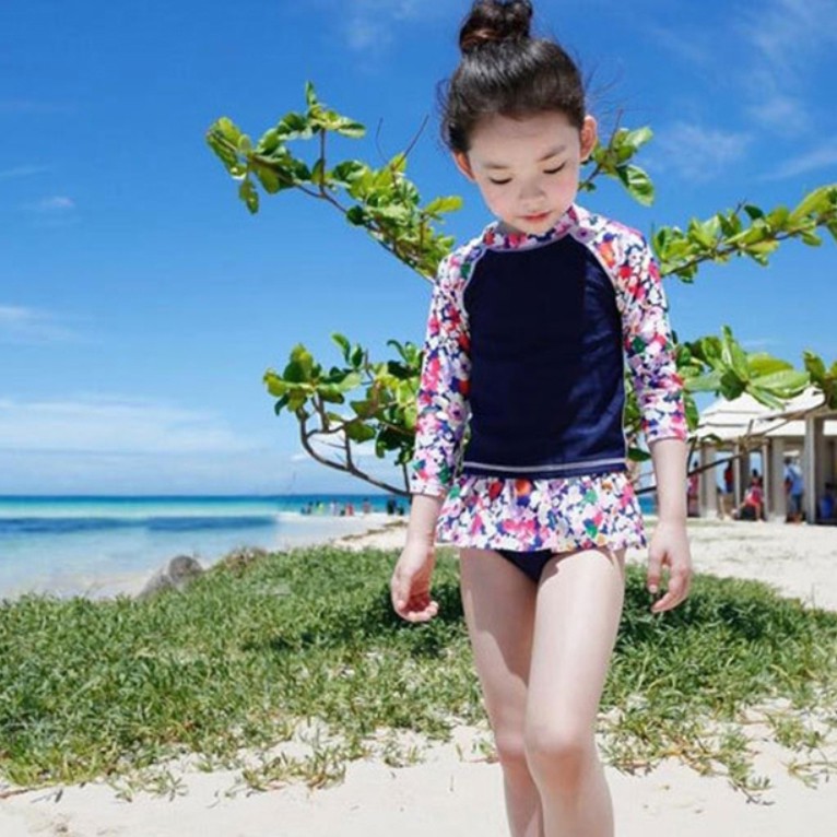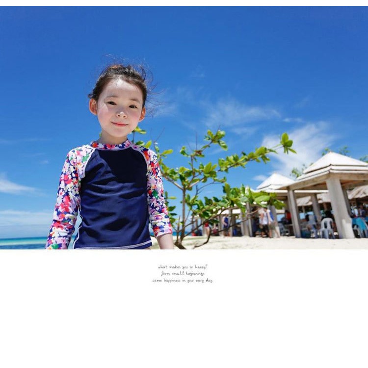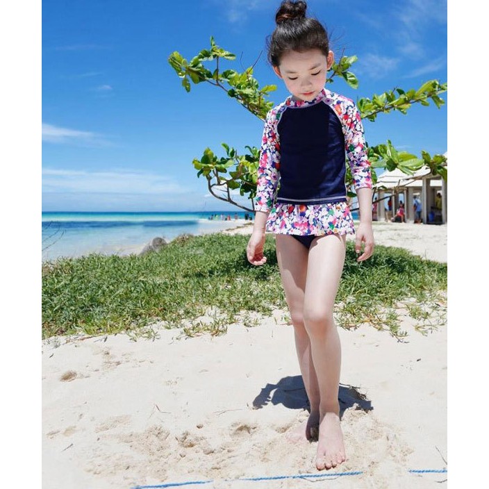 碎花防曬長袖泳裝+褲裙 二件式 泳衣 玩水褲 兒童 嬰兒泳衣 橘魔法【BB8252】
