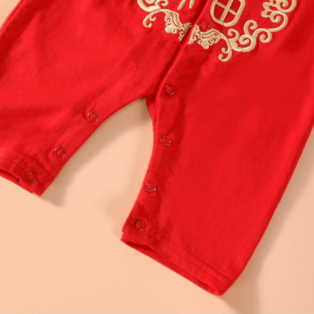 三件套 中國風刺繡福字純棉連身包屁衣+虎頭鞋+狀元帽 造型服 小童 抓週 週歲 童裝 現貨