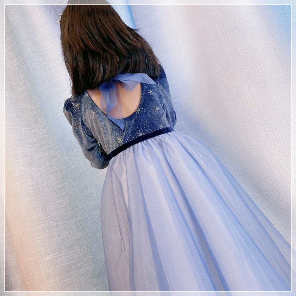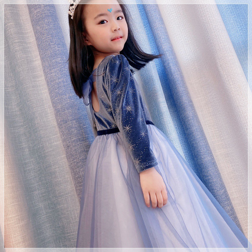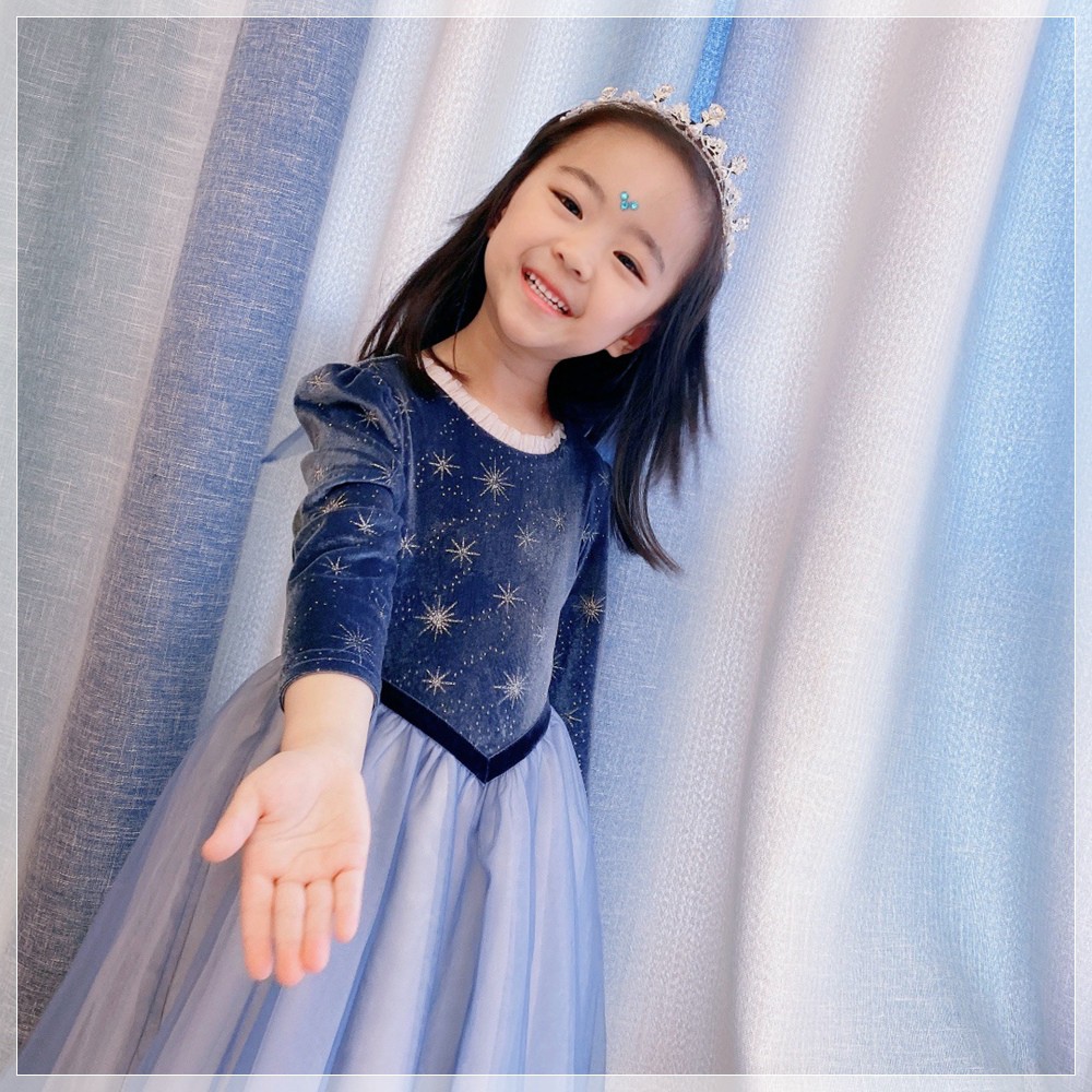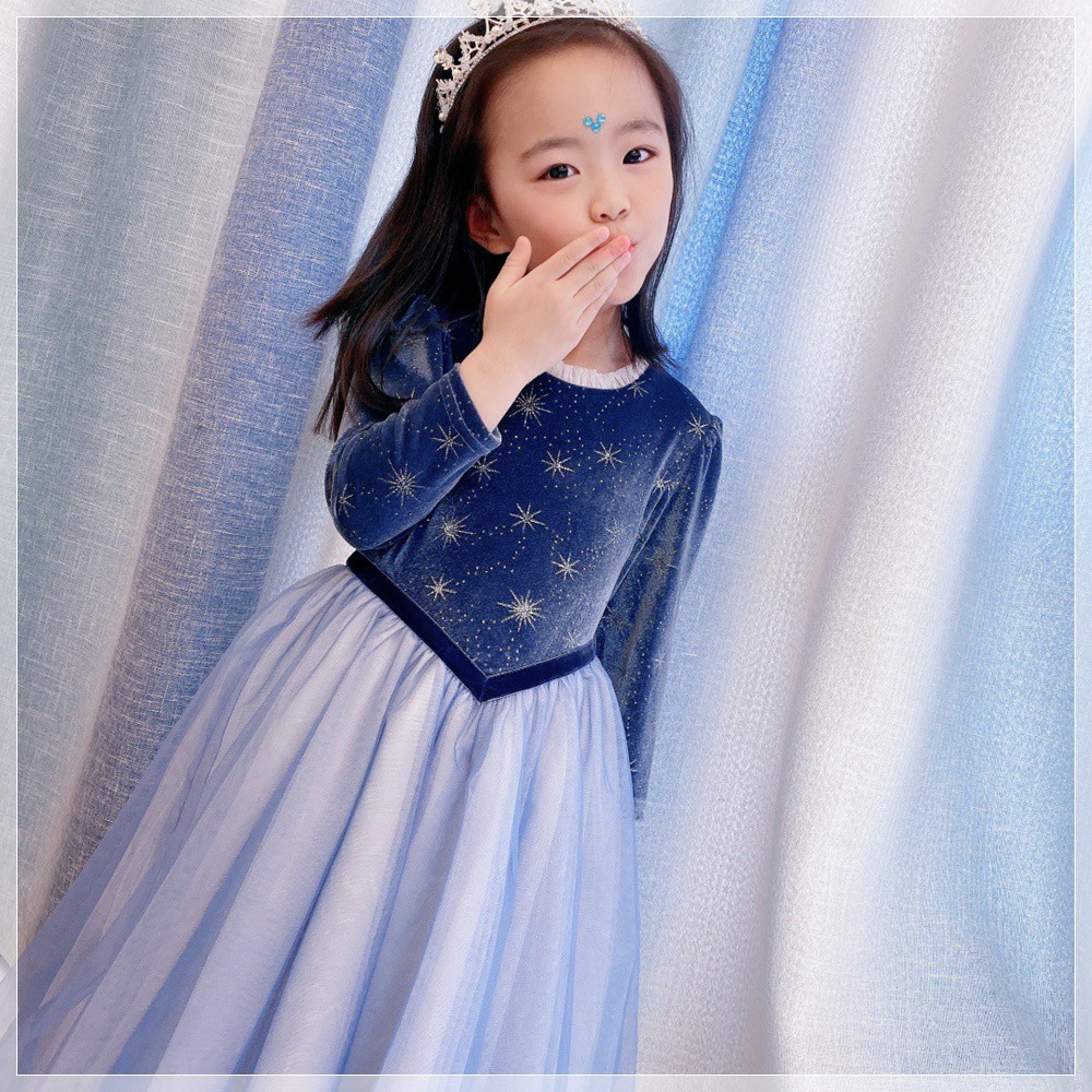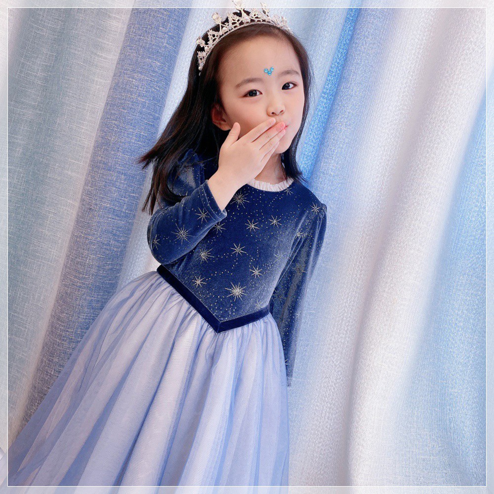 棉絨亮粉雪星公主洋裝 長裙洋裝 紗裙 連身裙 洋裝 橘魔法 女童 現貨 造型服 角色扮演 Cosplay【p006120