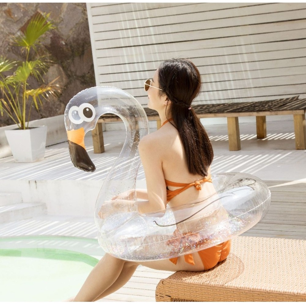 火烈鳥透明泳圈 亮片款 大人用 泳圈 座圈 坐圈 水上用品 游泳圈 泳池 游泳 海邊【p0061210889046】